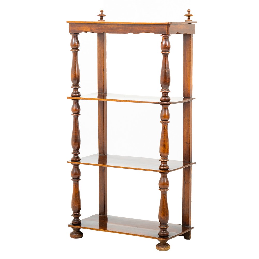 Cartiera a giorno con quattro ripiani in legno di noce.