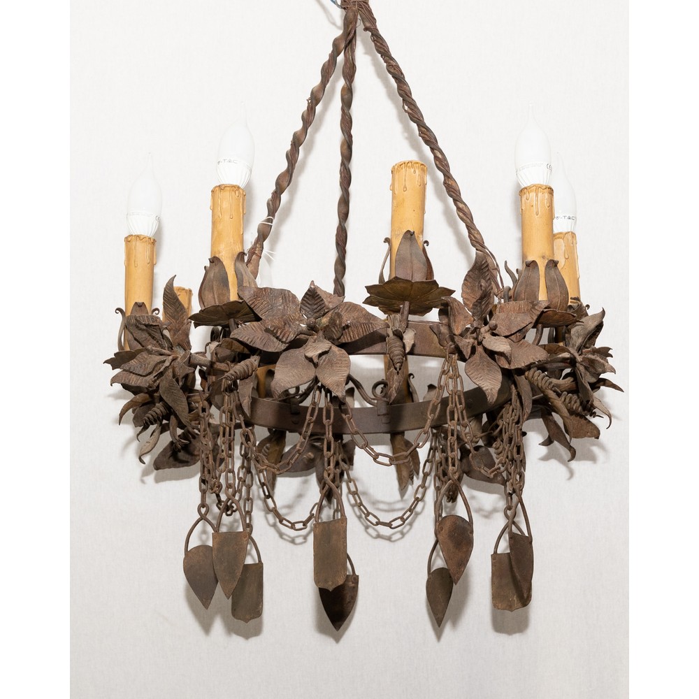 Lampadario in ferro battuto a nove luci.