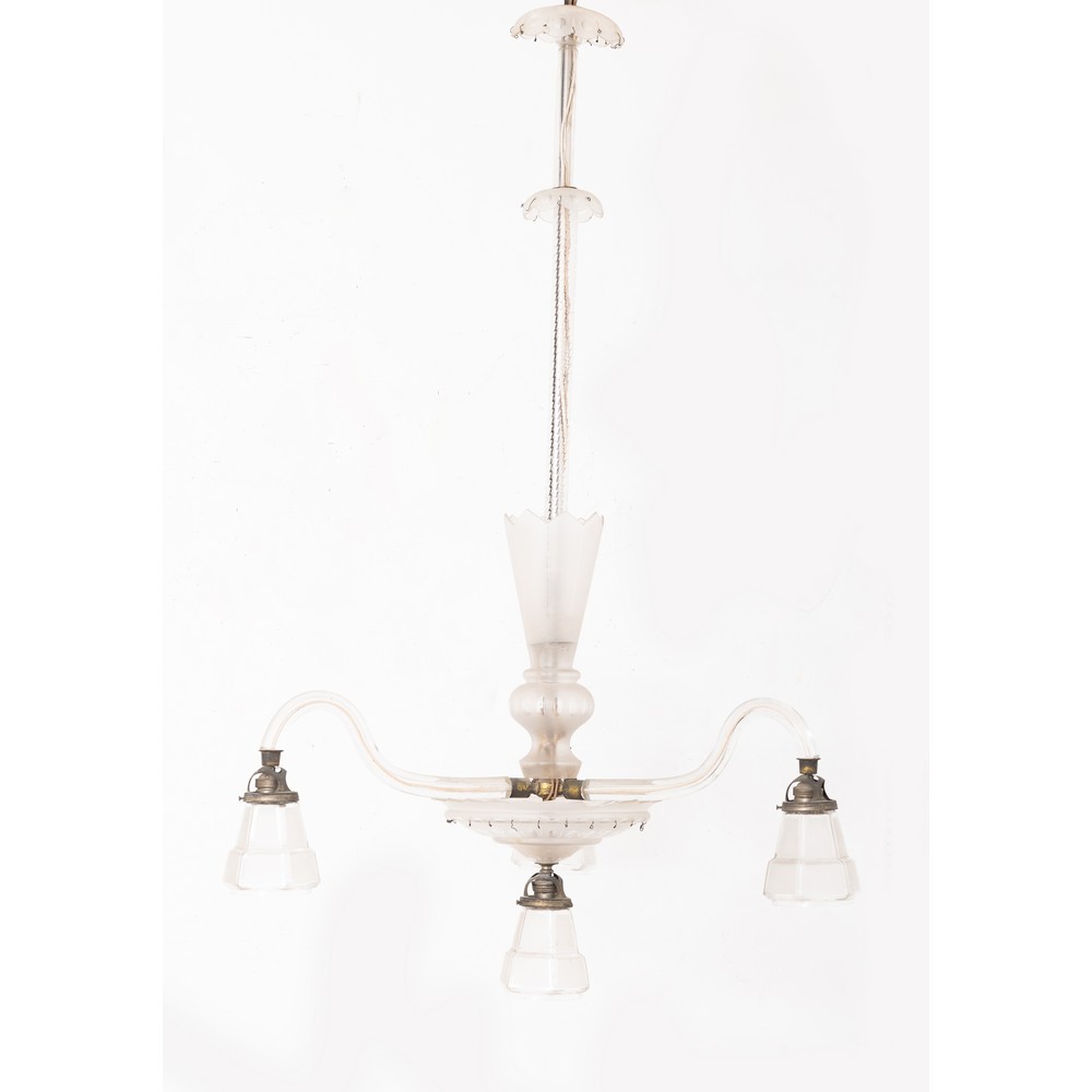 Lampadario in vetro a quattro luci (due bocce mancanti).