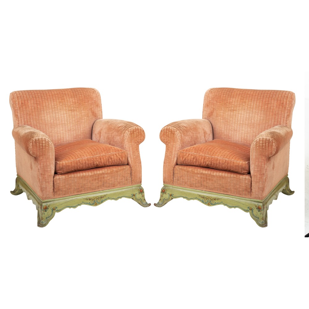 COPPIA DI POLTRONE in legno laccato e dipinto di gusto Veneziano.