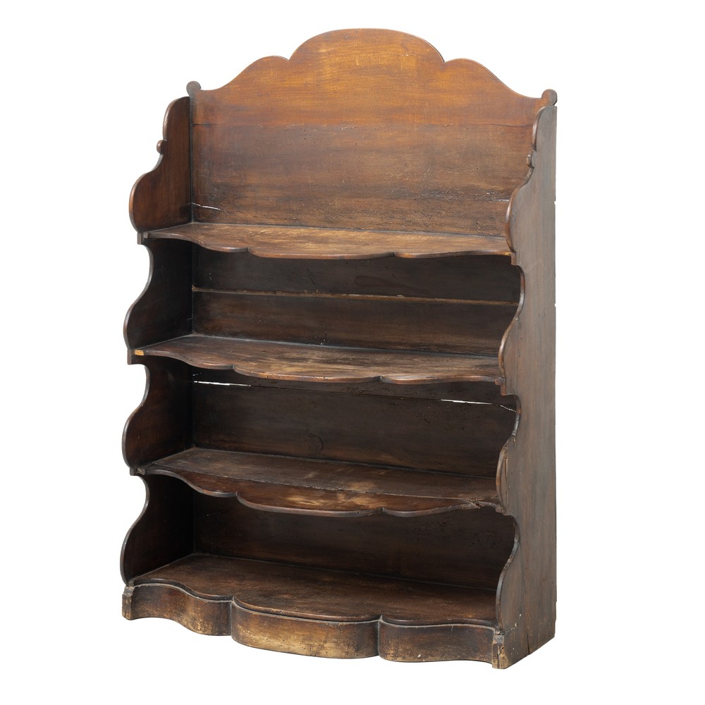 Piccolo mobile pensile a quattro ripiani in legno di noce.
