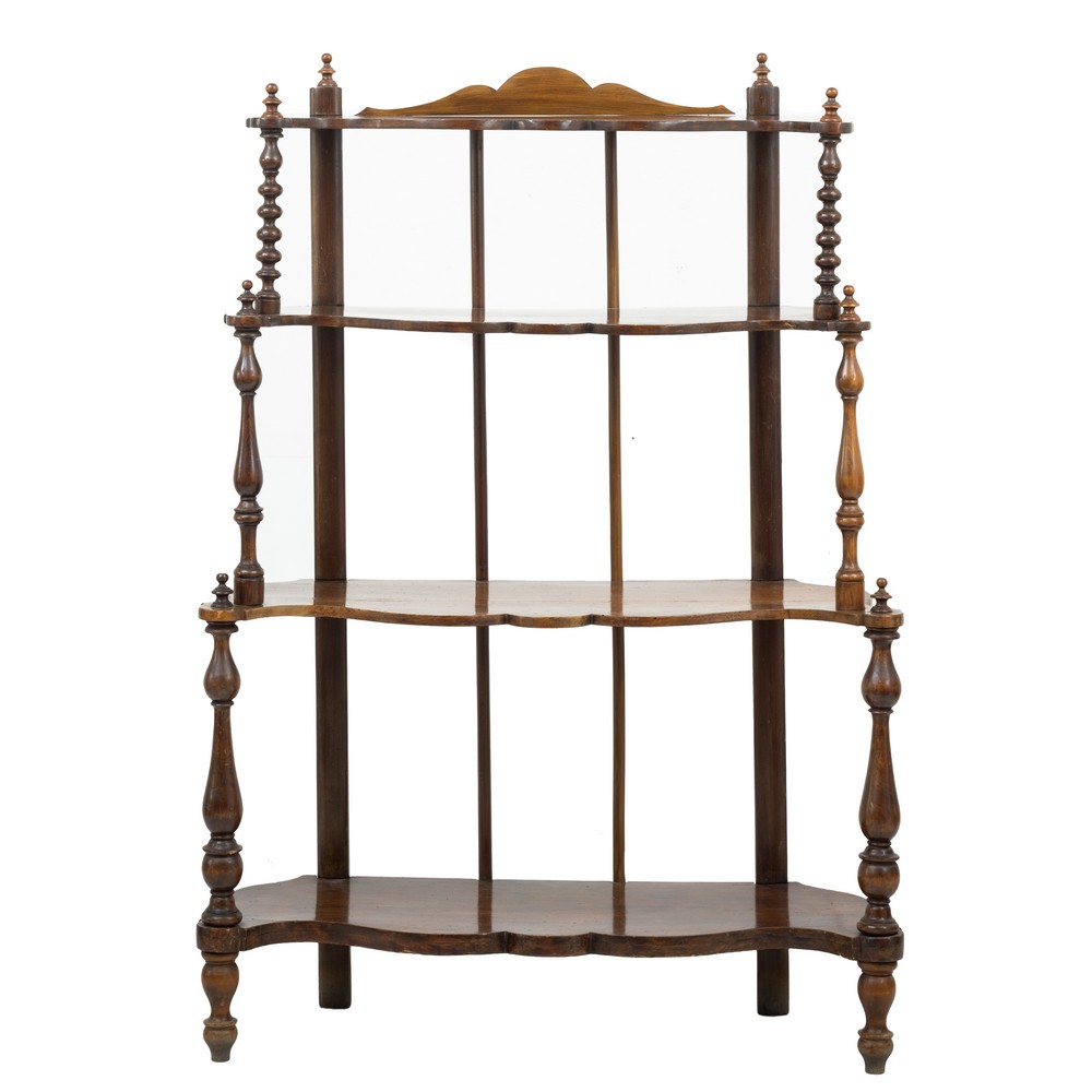 Cartiera a quattro ripiani di forma sagomata in legno di noce.