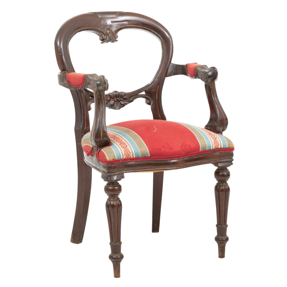 POLTRONA in legno di mogano con seduta tappezzata, periodo Vittoriano.