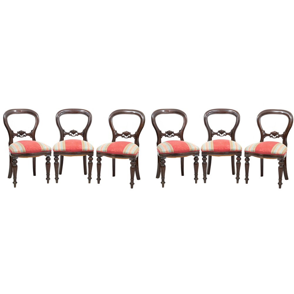 SEI SEDIE in legno di mogano con seduta tappezzata, periodo Vittoriano.
