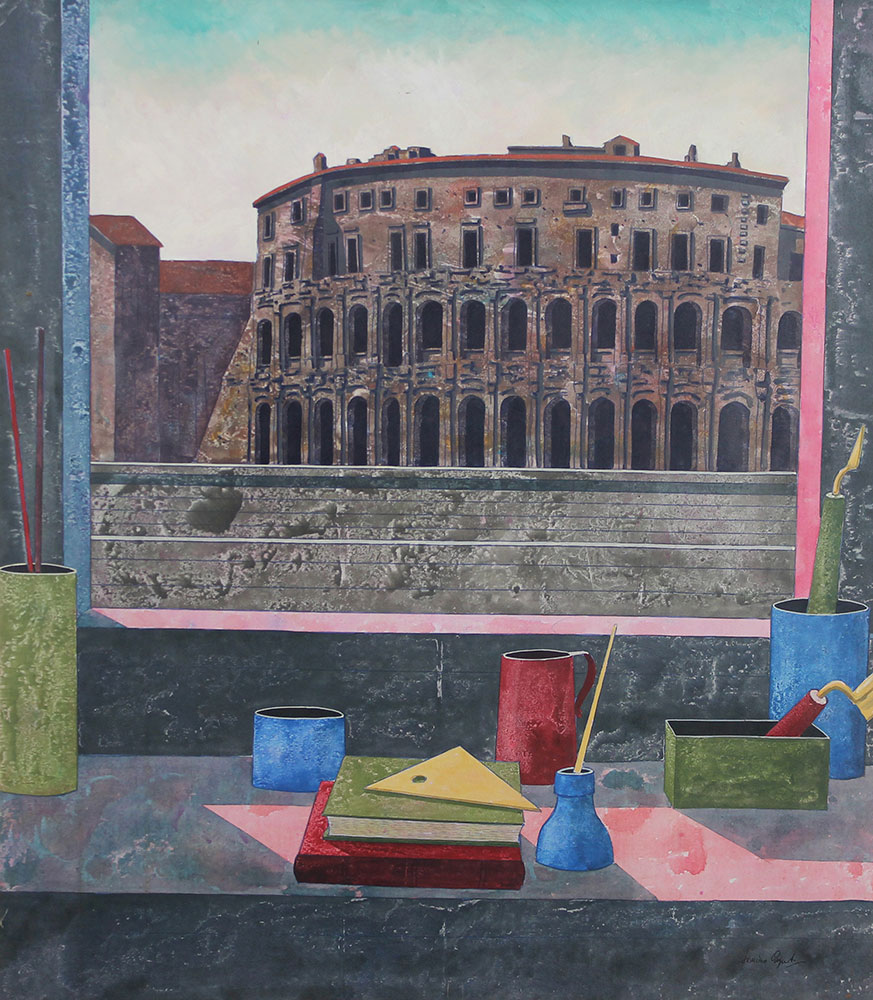 Caputo Tonino Teatro di Marcello acrilico su tela, cm. 80x70 firmato in basso a destra, firmato e intitolato al retro, timbri della galleria Il Castello di Adria al retro
