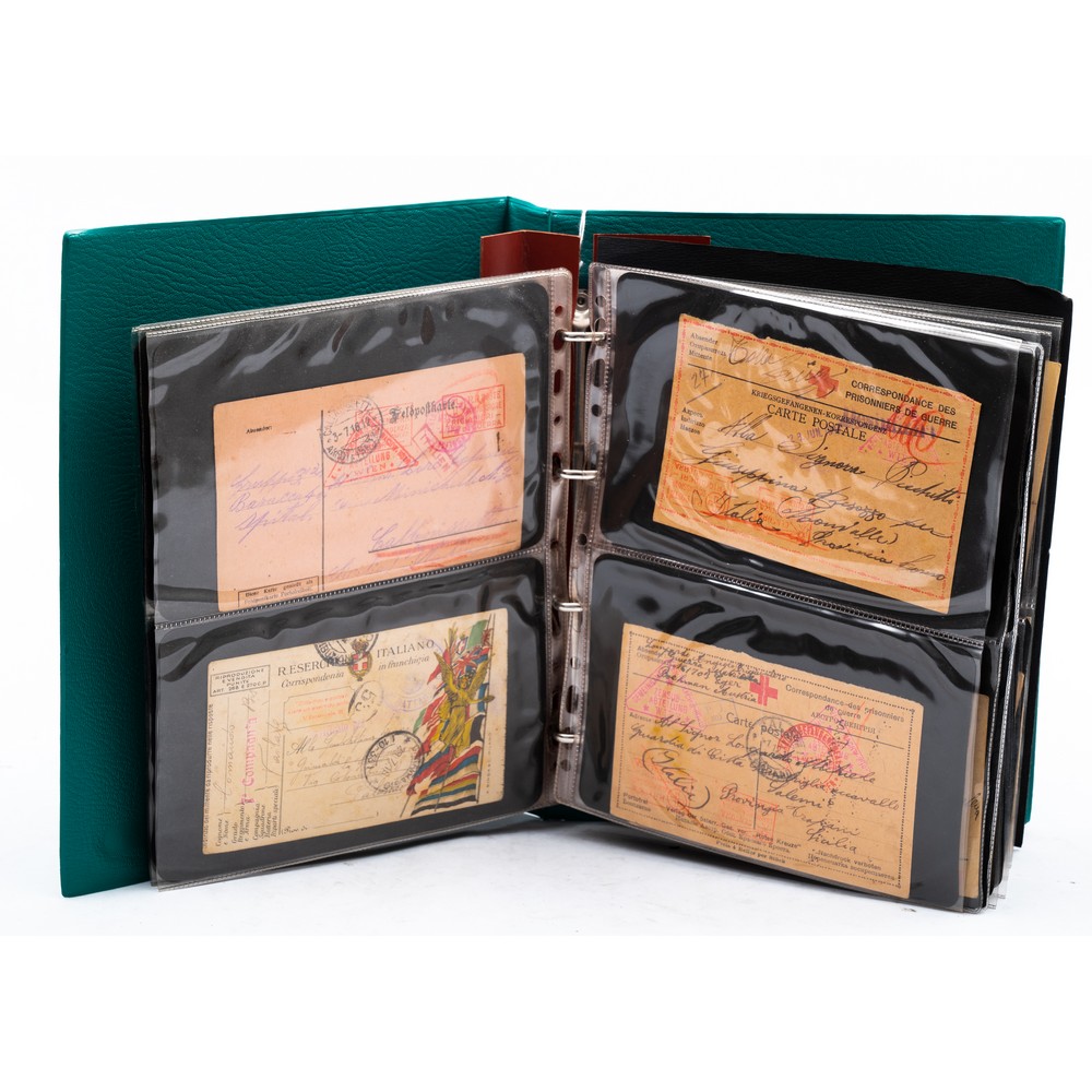 RACCOGLITORE CONTENENTE 86 TRA CARTOLINE POSTALI E BUSTE AFFRANCATE con affrancature originali, relative alla I e II guerra mondiale.