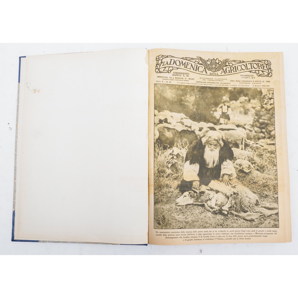 RACCOLTA RILEGATA DELLA DOMENICA DELL’AGRICOLTORE, anni 1935 – 1937. Settimanale illustrato del "Popolo d'Italia". Pag. 16 ca. ogni fascicolo con varie illustrazioni fotografiche seppiate e alcune illustrazioni in monocromia.