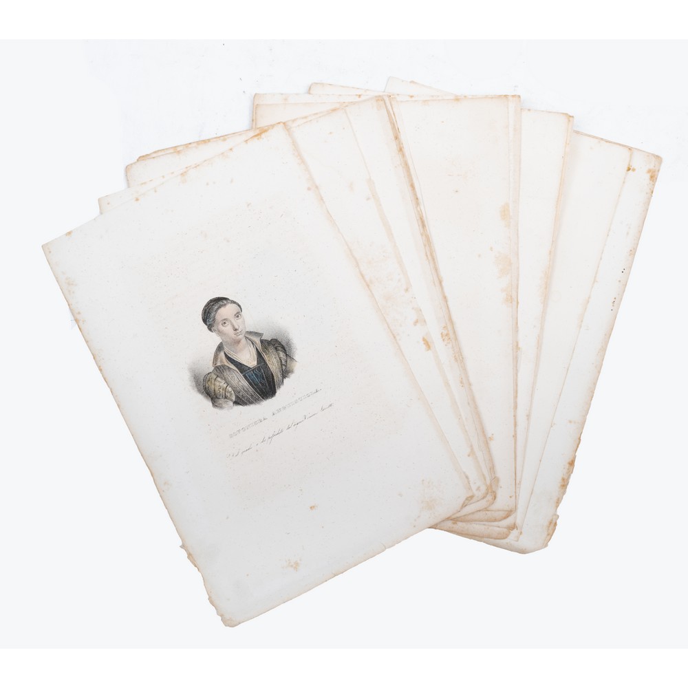 QUATTORDICI RITRATTI DI DONNE CELEBRI, di cm 28 x 18, tratte dall’opera della Duchessa d’Abrantes, stampata a Milano nel 1861 e realizzati dai più famosi incisori dell’epoca.