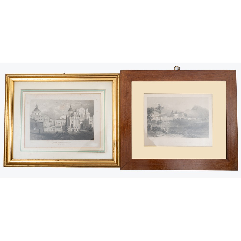 DUE STAMPE DEL XIX SECOLO. La prima raffigura il palazzo reale di Palermo. Opera di W. L. Leitch e W. Floyd. L’opera misura cm 17 x 21, in passepartout entro cornice lignea novecentesca. La seconda raffigura la Piazza dell’Elefante di Catania, ad opera di P. Dewint ed E. Goodall. L’opera misura cm 13 x 21, in passepartout entro cornice in legno novecentesca.