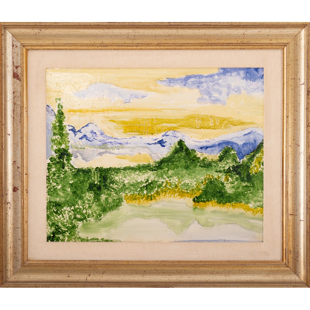 ROBERTO SAPIO, Paesaggio lacustre, Olio su cartoncino