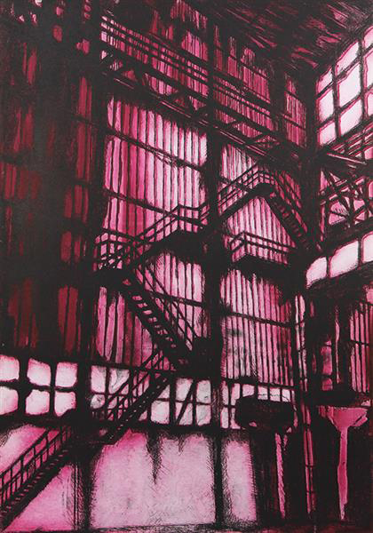 Chiesi Andrea Clandestina 1, 2000 acquaforte e acquatinta su carta Magnani 310 grammi, cm. 69,5x49,5, es. 89/99 firmata in basso al centro, opera edita da Tema Celeste Edizioni