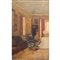 PITTORE DEI PRIMI DEL '900, Interno con figura, Olio su tavoletta