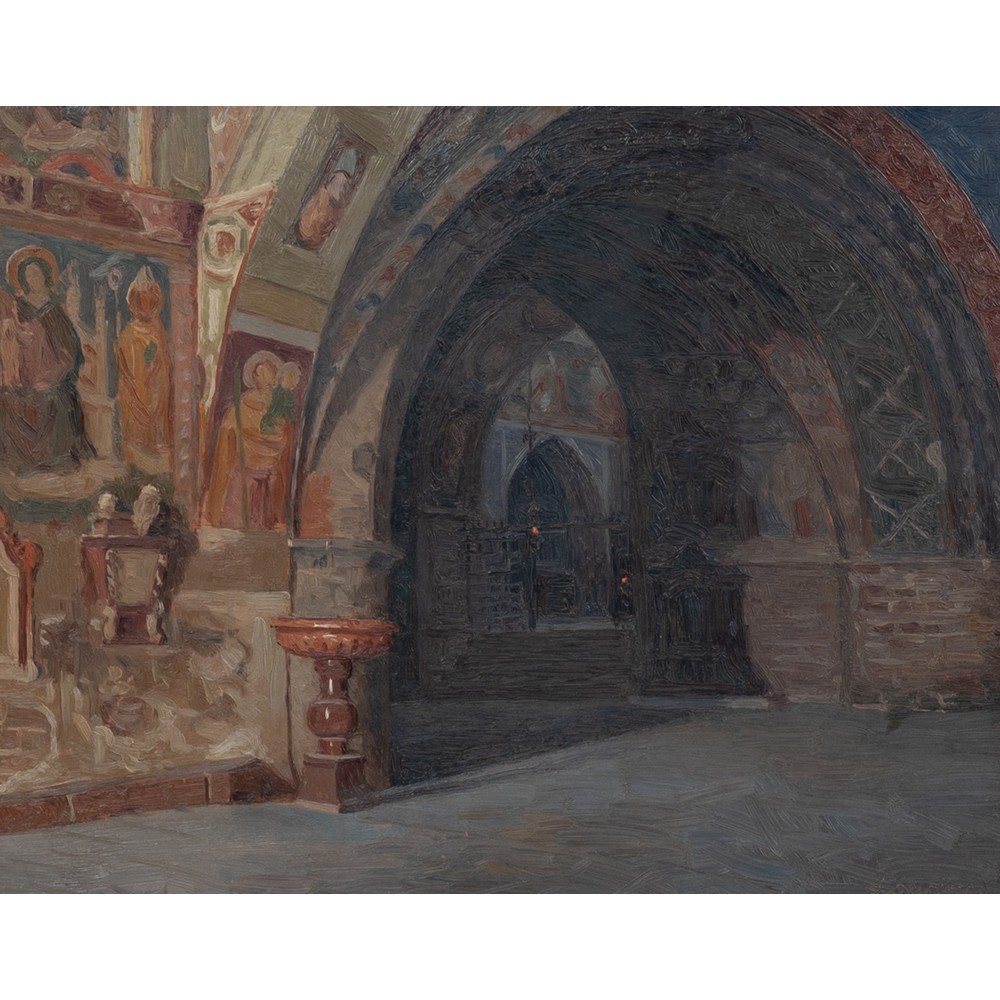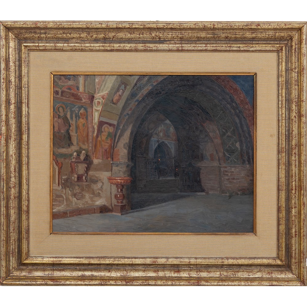 LAURENZIO LAURENZI, Interno di chiesa, Olio su tavola