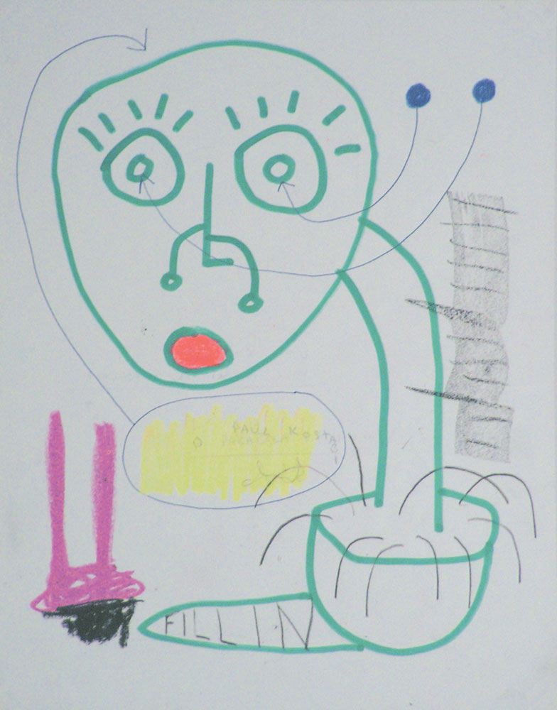 Kostabi Paul Fill in slightly different, 2002 tecnica mista su carta, cm. 35x28 firmata al centro, firmata datata e intitolata al retro, pubblicata su catalogo della mostra "Paul Kostabi" tenutasi presso la Saletta Viviani di Pisa dal 1 al 31 dicembre 2007 a pagina 18