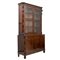 Credenza doppio corpo lastronata in legno esotico con due ante e cassetto nella parte sottostante e due ante a vetri nella parte sovrastante.