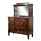 Cassettone con specchiera Impero in mogano con tre cassetti e due piccoli cassetti, fregi in legno raffiguranti "Sfingi", maniglie in ottone, piano in marmo verde delle alpi incassato (il marmo presenta mancanze e rotture).