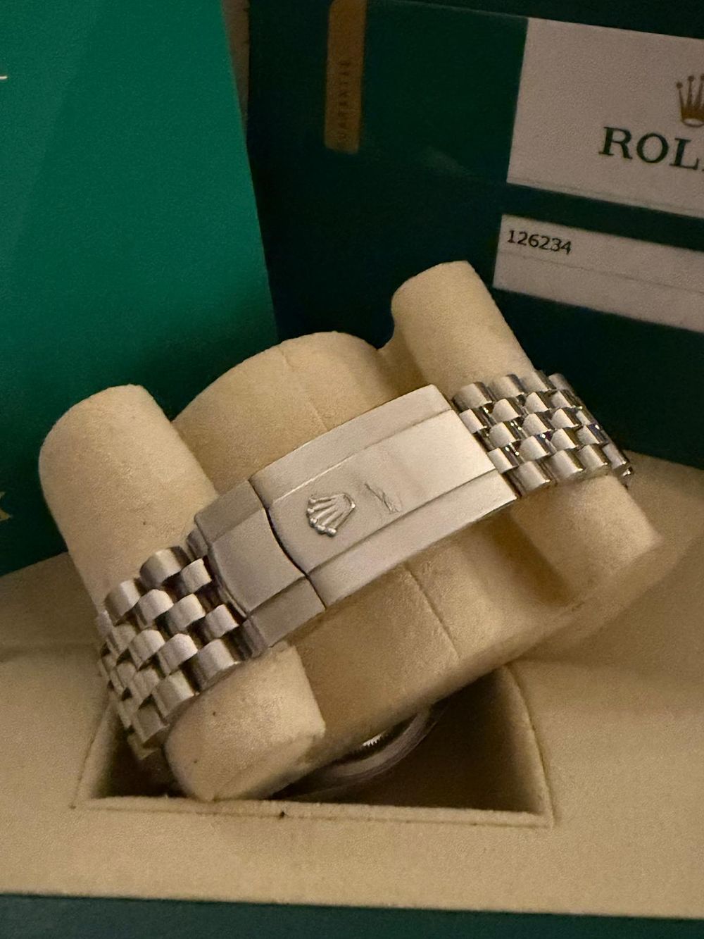 Marca Rolex Modello (Orologio) Datejust 36 Numero di referenza 126234 Carica Automatico Materiale della cassa Acciaio Materiale cinturino Acciaio Anno di produzione 2020 Corredo documenti originali, no box Calibro Carica Automatico Materiale della cassa Acciaio Diametro 36 mm Impermeabile 10 ATM Materiale lunetta Oro bianco Vetro zaffiro Cinturino Materiale cinturino Acciaio Colore cinturino Acciaio Chiusura Déployante