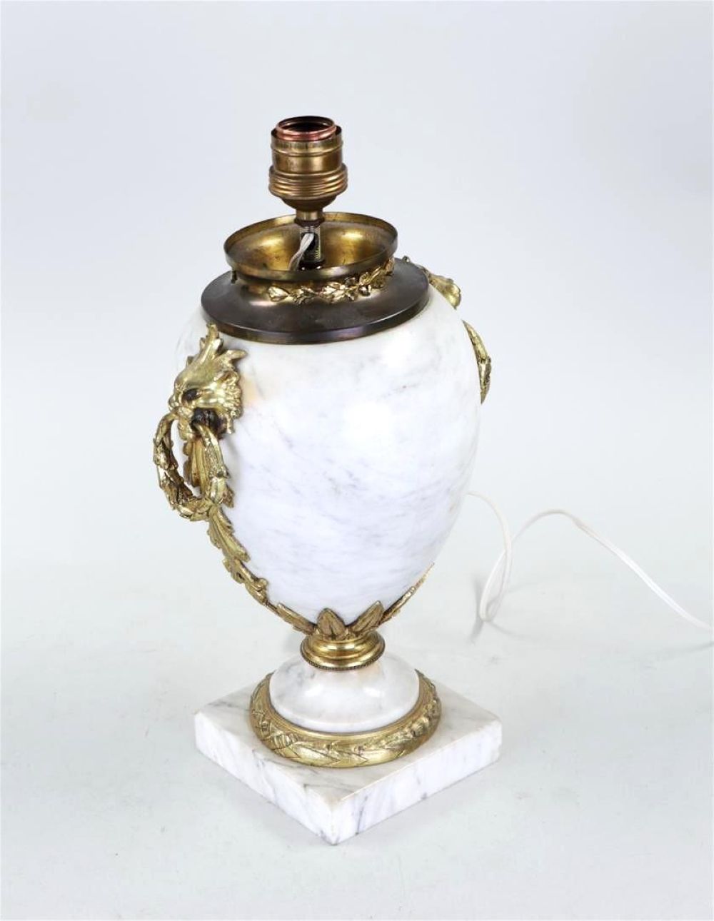 A white marble casolette with bronze mounts. Italy, 20th century.H.: 37 cm.