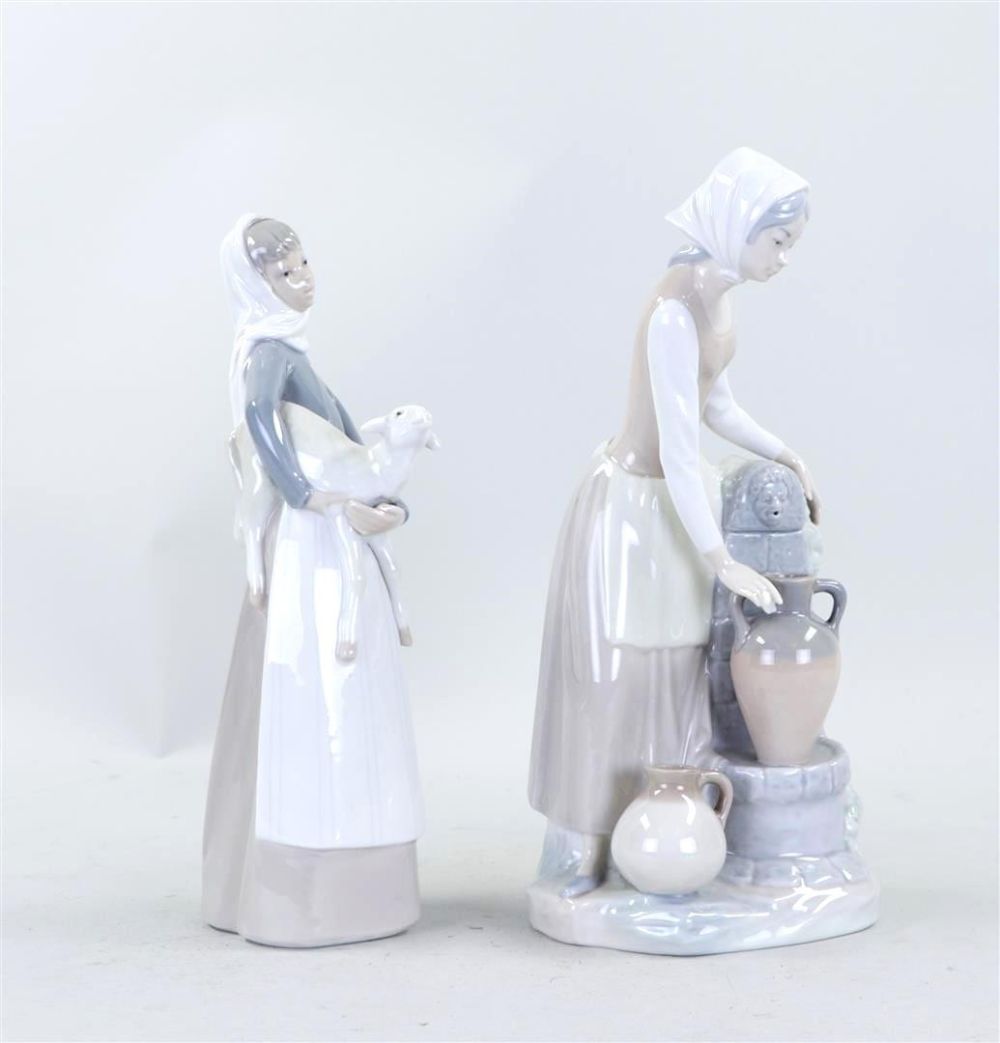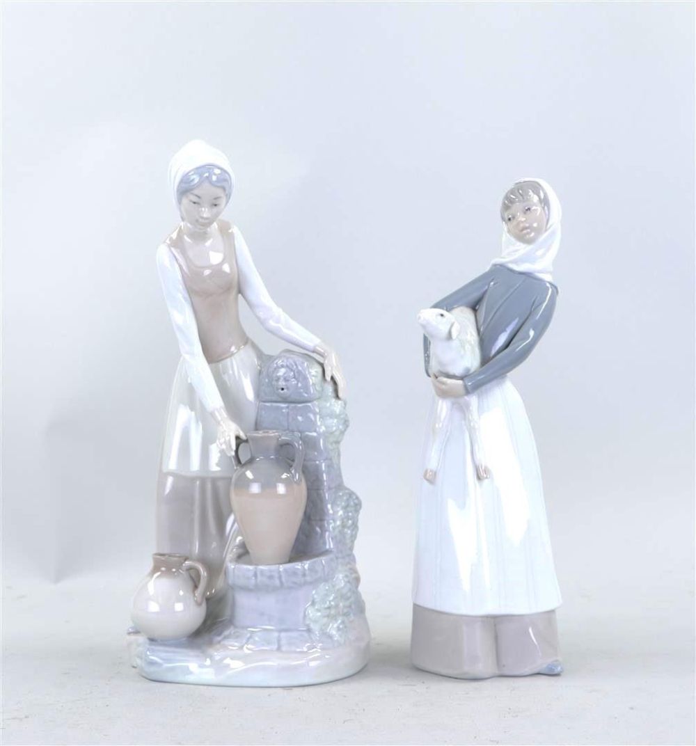 A lot consisting of (2) Lladro figurines of peasant women. Marked on the...
