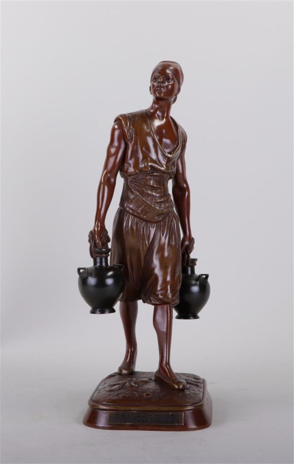 Marcel Debut (France, 1865-1933) Le porteur d'eau thisien, bronze patinated statue, exibithion prize de Rome 1890.