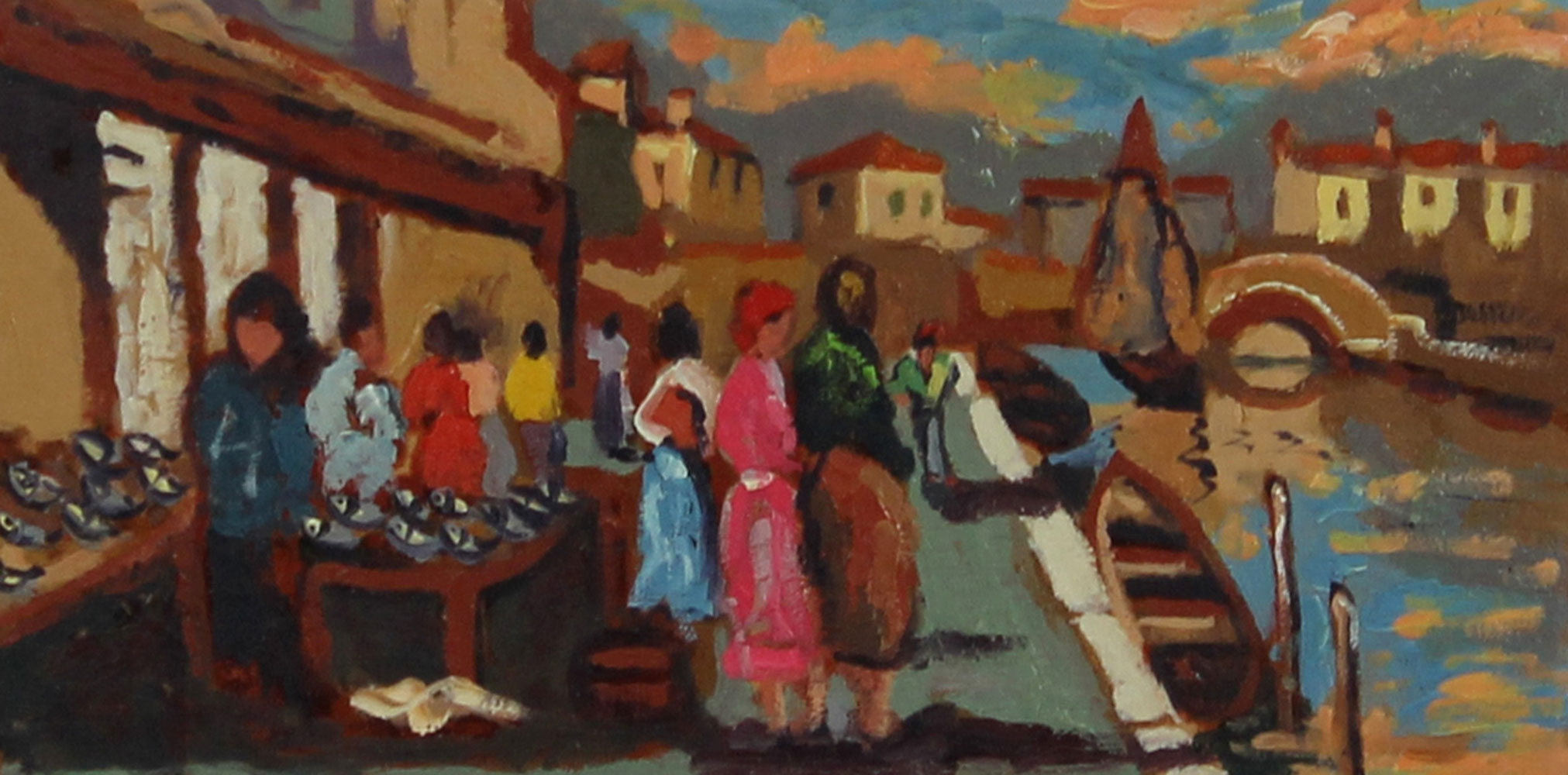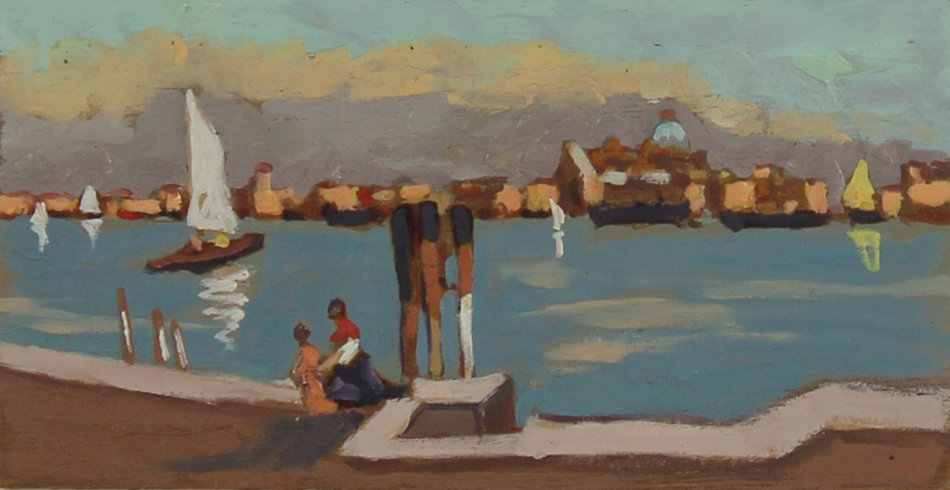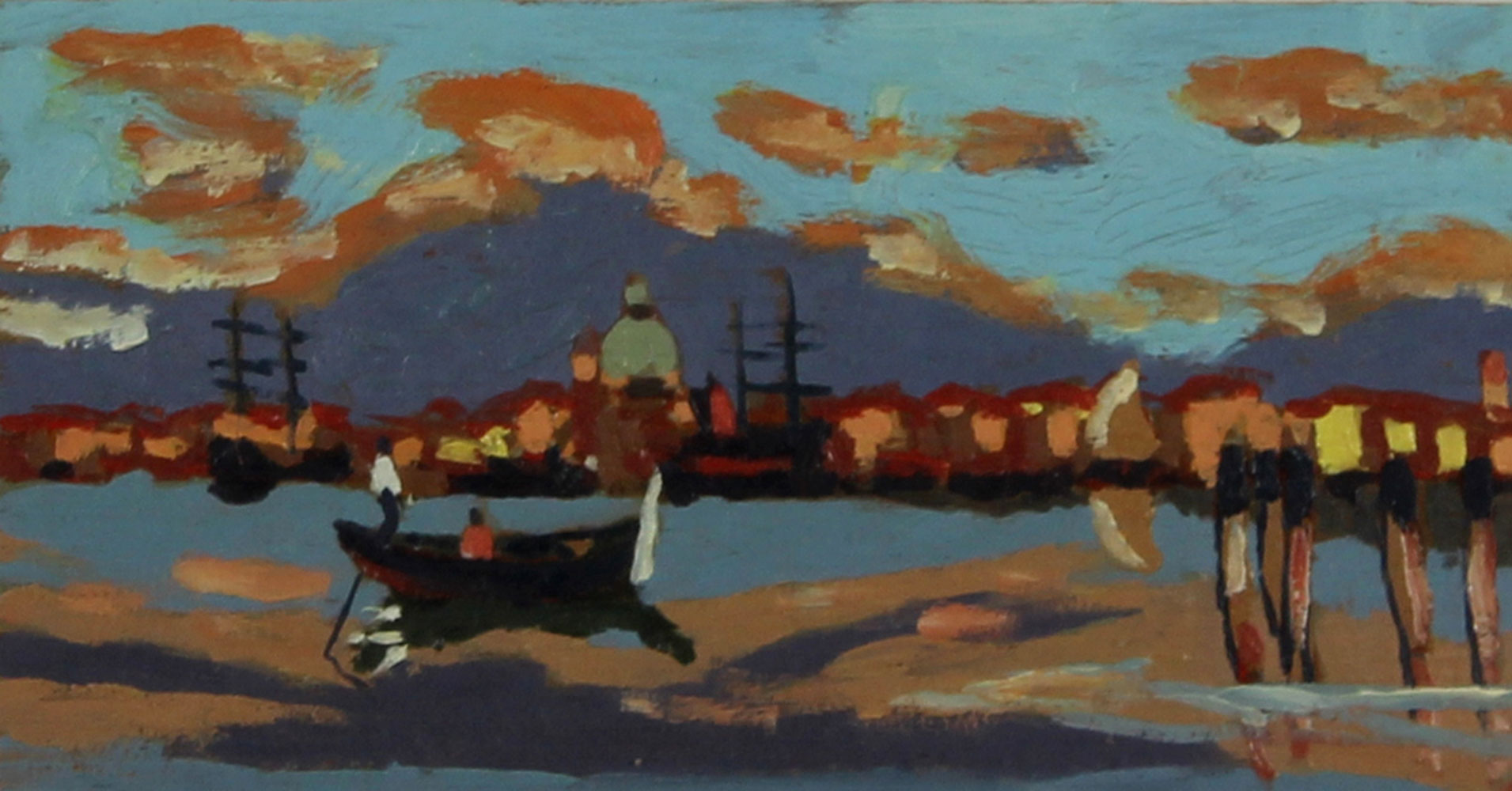 Spinelli Paesaggi lagunari lotto di 3 oli su tavola, cm. 13x25
