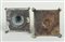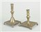 A lot of two Spanish brass candlesticks on a square base and legs, 17th/18th...
