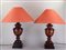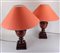 A set of (2) solid mahogany urn-shaped table lamps with red shade. Height: 70...