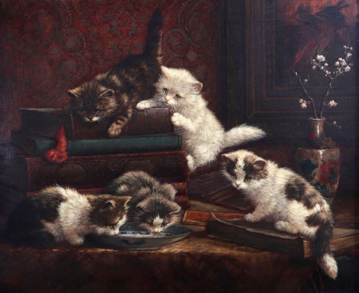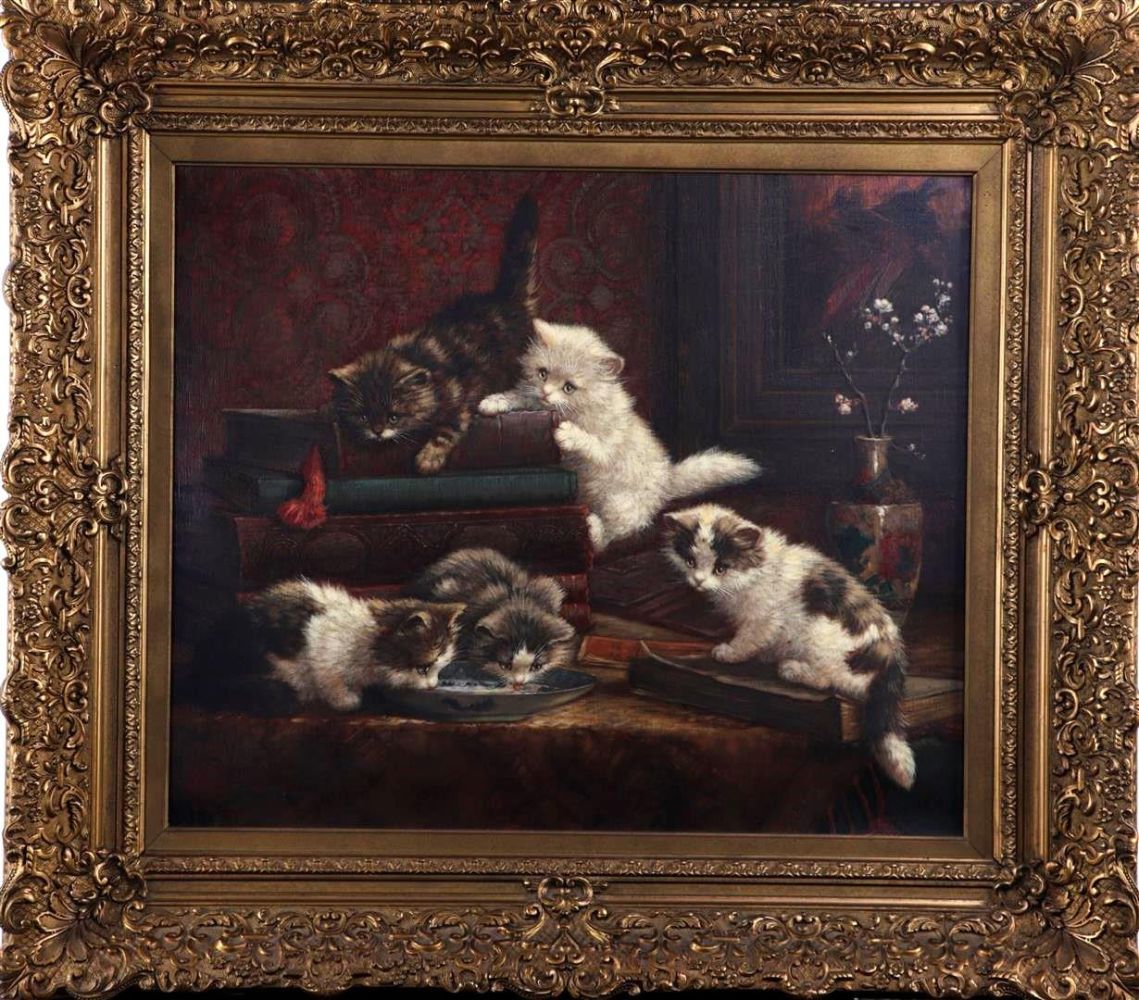 Precedente Lotto 1157 Successivo Medusa Auctioneers - Struikhei 37 84714743, 3761DB Sprundel Paintings, Silver, Lots & Miscellaneaous, Asian Arts, Jewelry, Fine Wines & Champagnes First Session - Paintings, Silver, Lots & Miscellaneaous lunedì 16 dicembre 2024 ore 19:00 (UTC +01:00) Cornelis Raaphorst (1875 - 1954), Kittens in an interior, signed (lower...