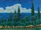 Alvaro Paesaggio marino con cipressi olio su tela, cm. 30x40 firmato in basso a destra e firmato per autentica al retro