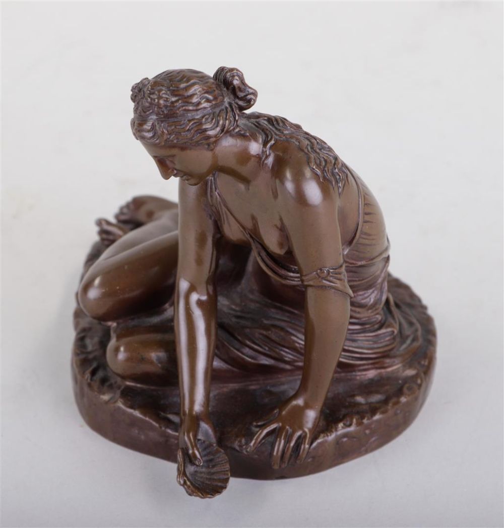 A bronze statue of a young woman with a shell. France 19th century.H.: 13 cm.