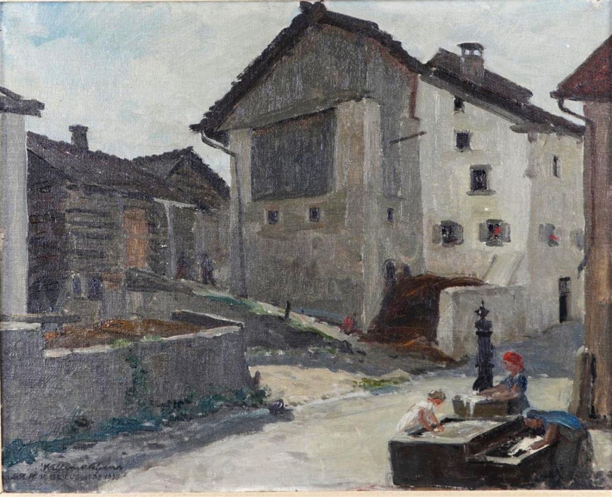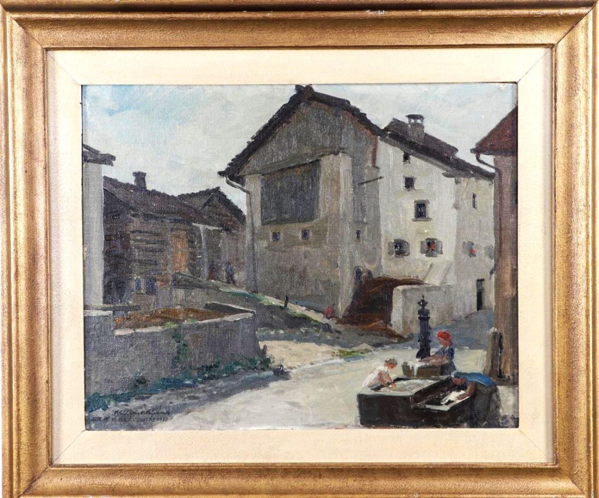 Willem Witjens, Washhouse, Brienz, Switzerland, signed and annotated (lower left), oil on canvas on panel, marouflé.