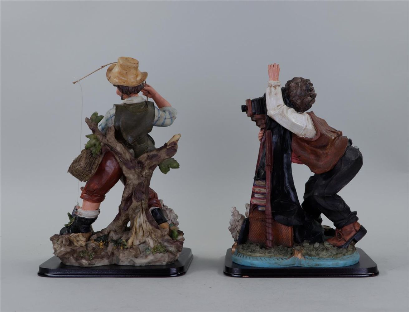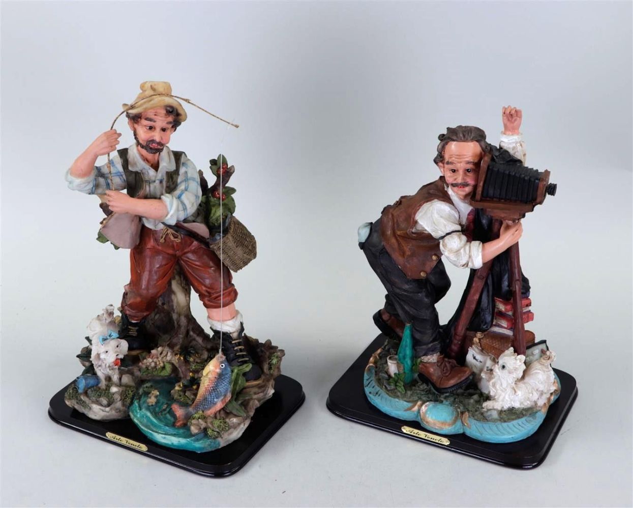 A lot consisting of (2) resin groups of a photographer and a fisherman. Italy, 20th century.