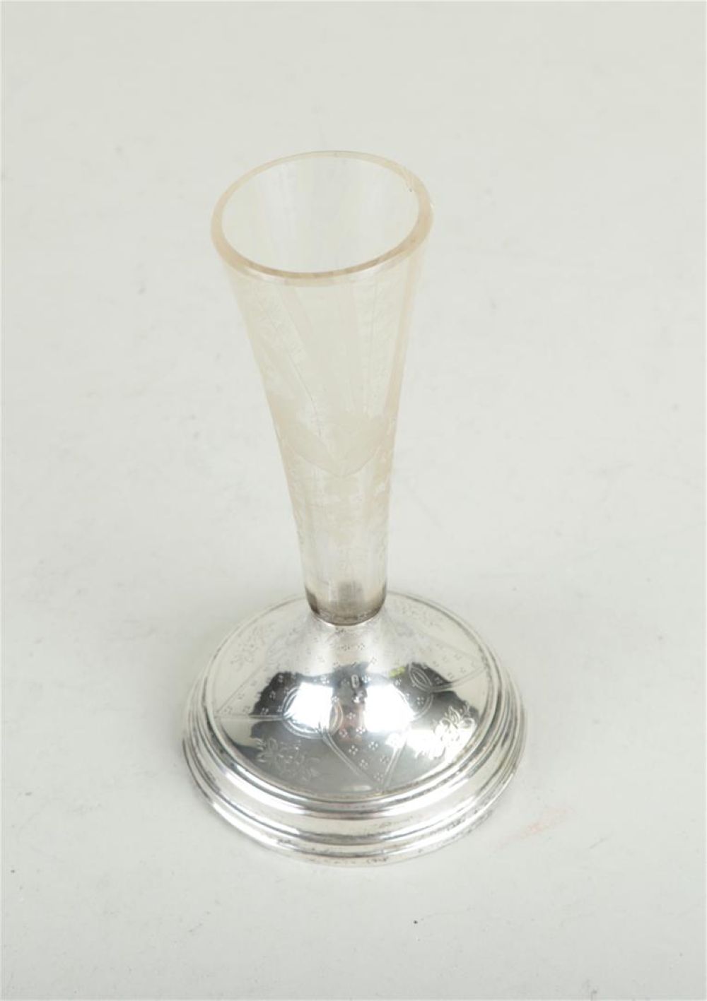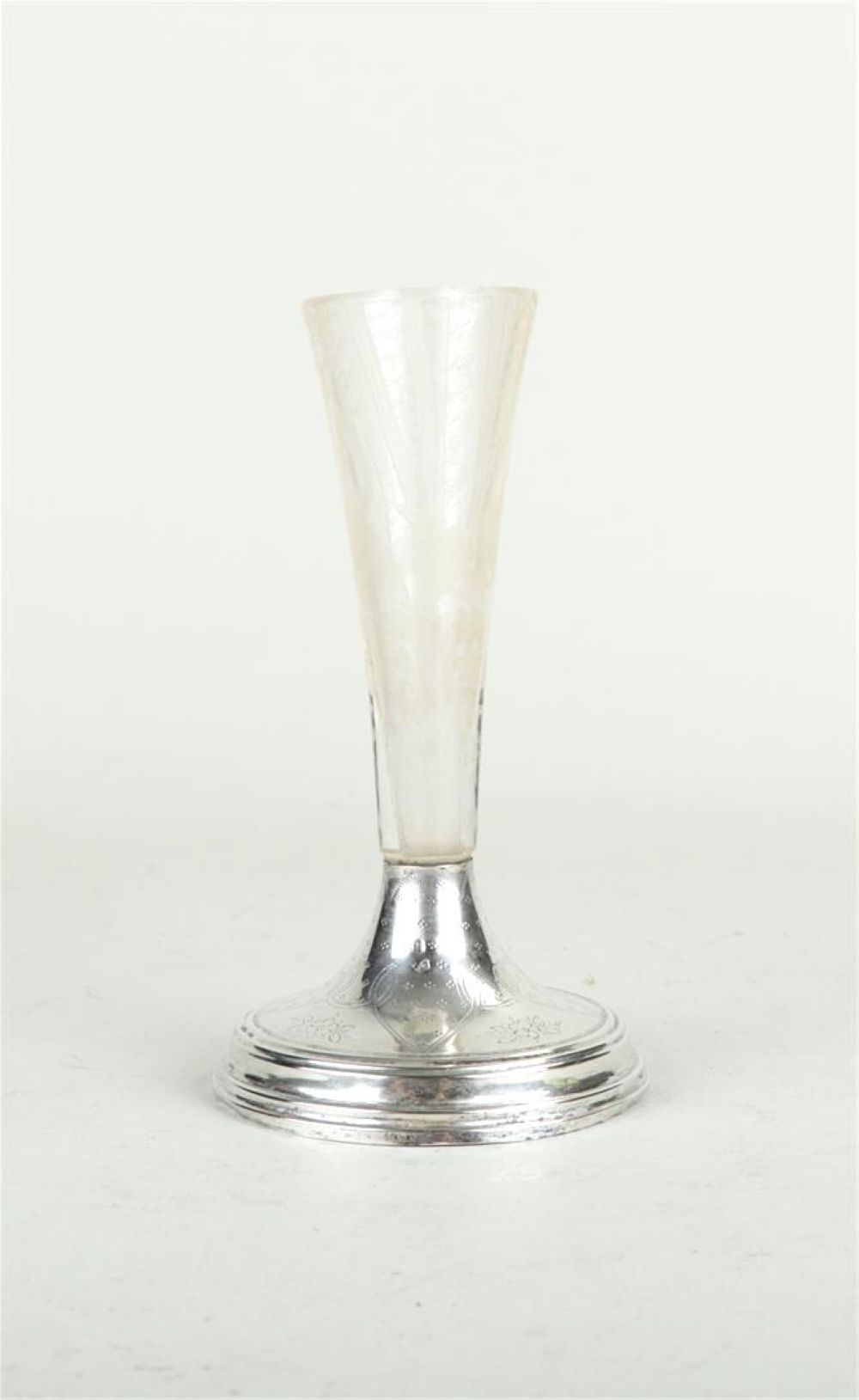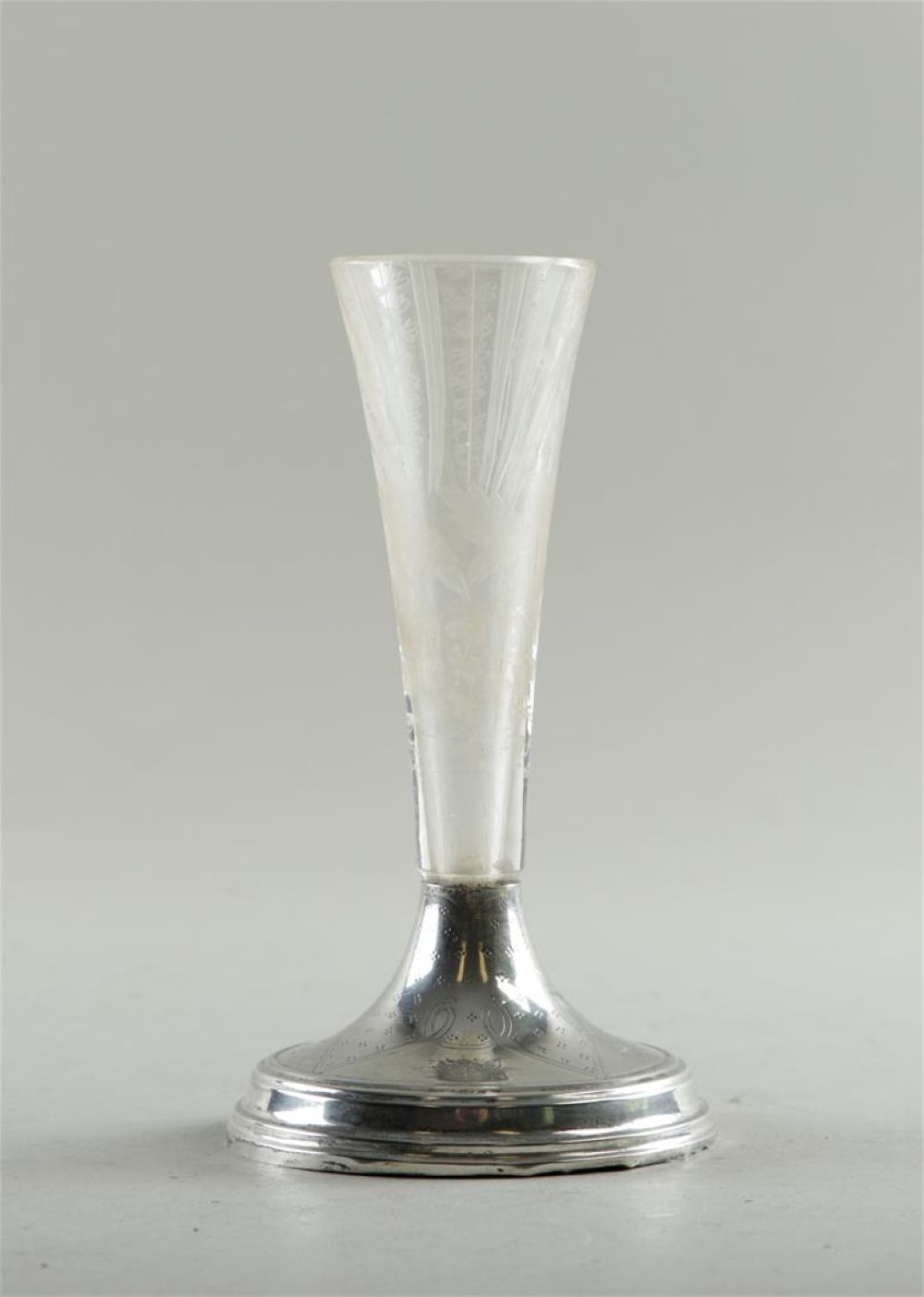 An antique so-called trumpet vase on silver stand. Holland, 19th century. A small chip on the edge.