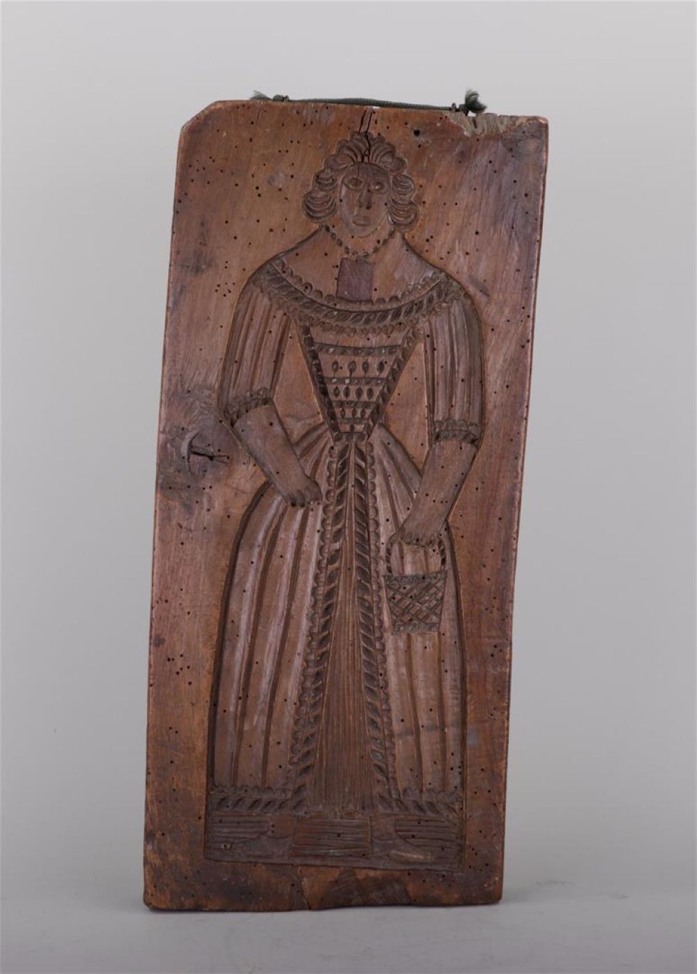 An 18th century speculaas board, front a female, back a male. 42 x 19 x 4.5 cm.