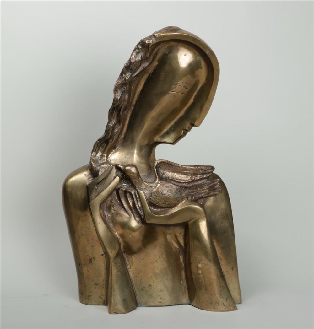 Attributed to Ossip Zadkine (1888 - 1967), Young girl in a column, bronze....