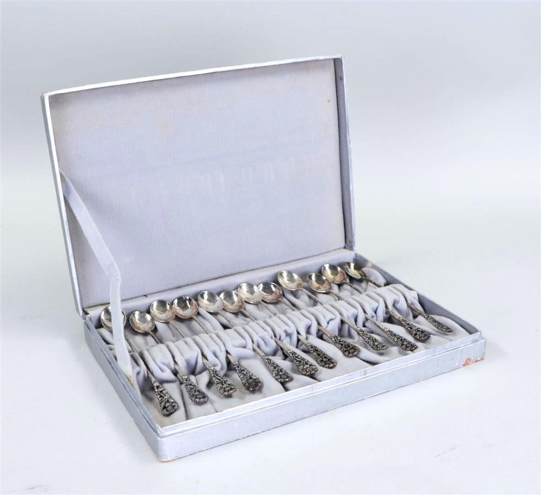 A set of twelve Djokja silver ice cream spoons in original casette. 275 grams.