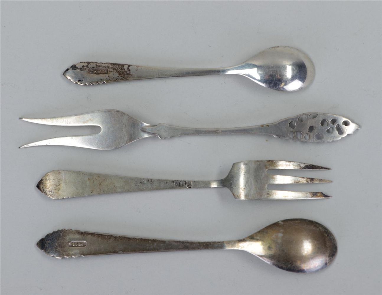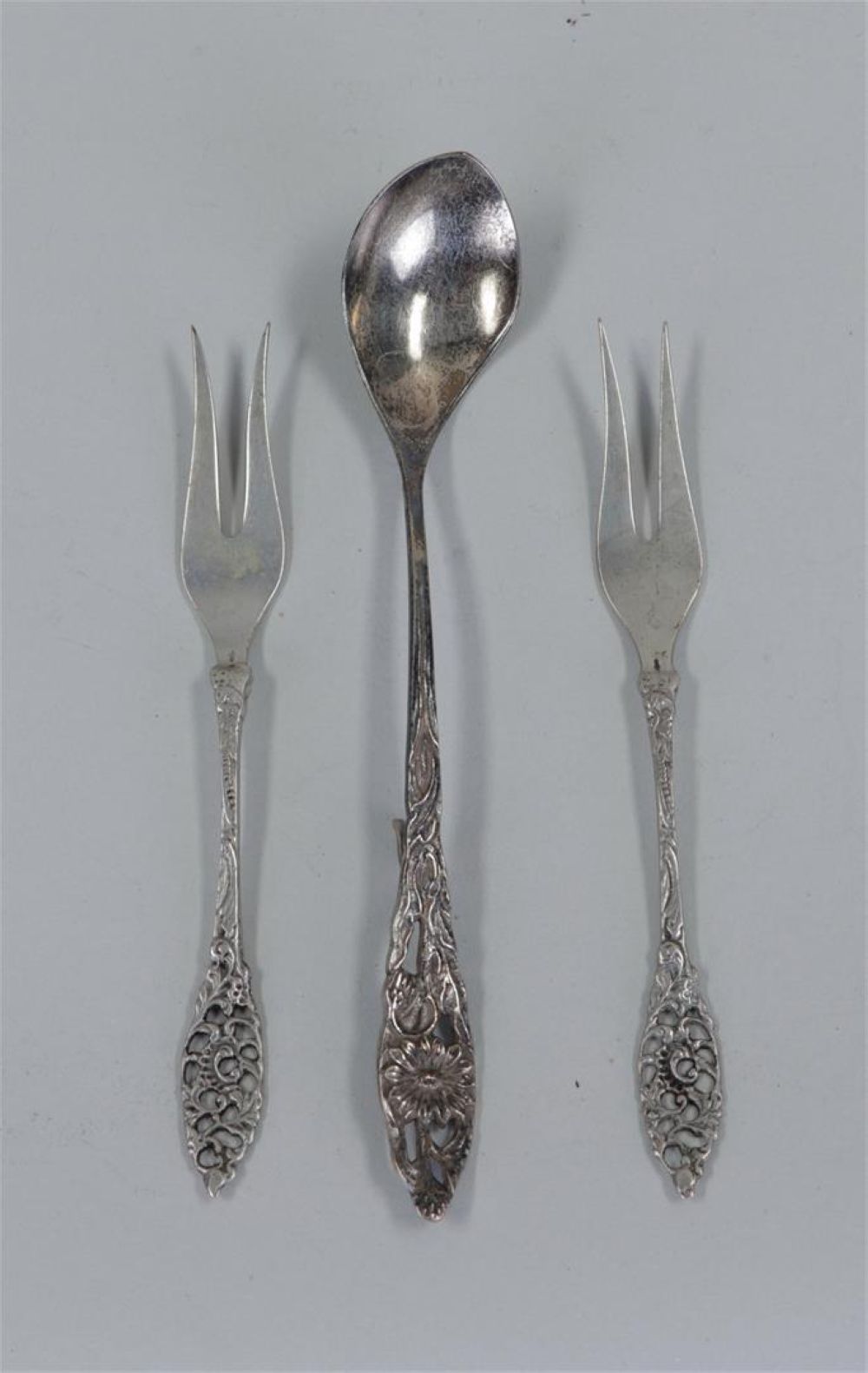 A lot of various Djokja silver spoons and forks. 275 grams.