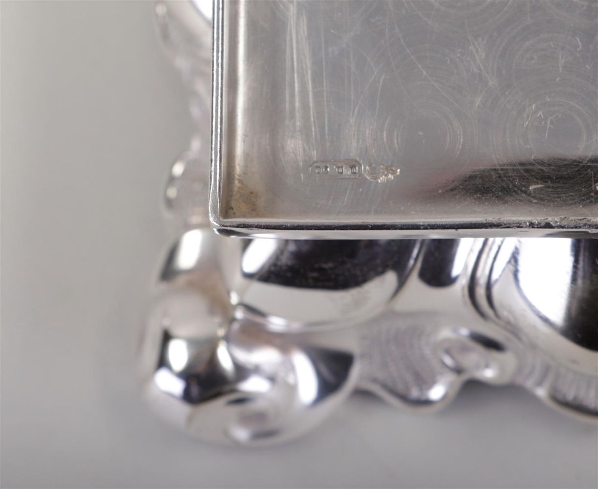A pair of silver-plated standards in Louis XV style. The largest 10.5 x 10.5 x 5 cm.