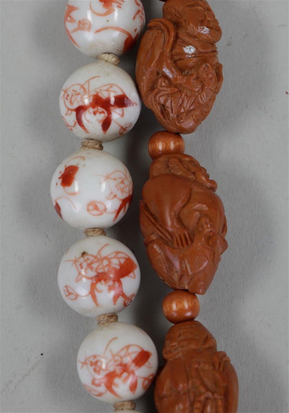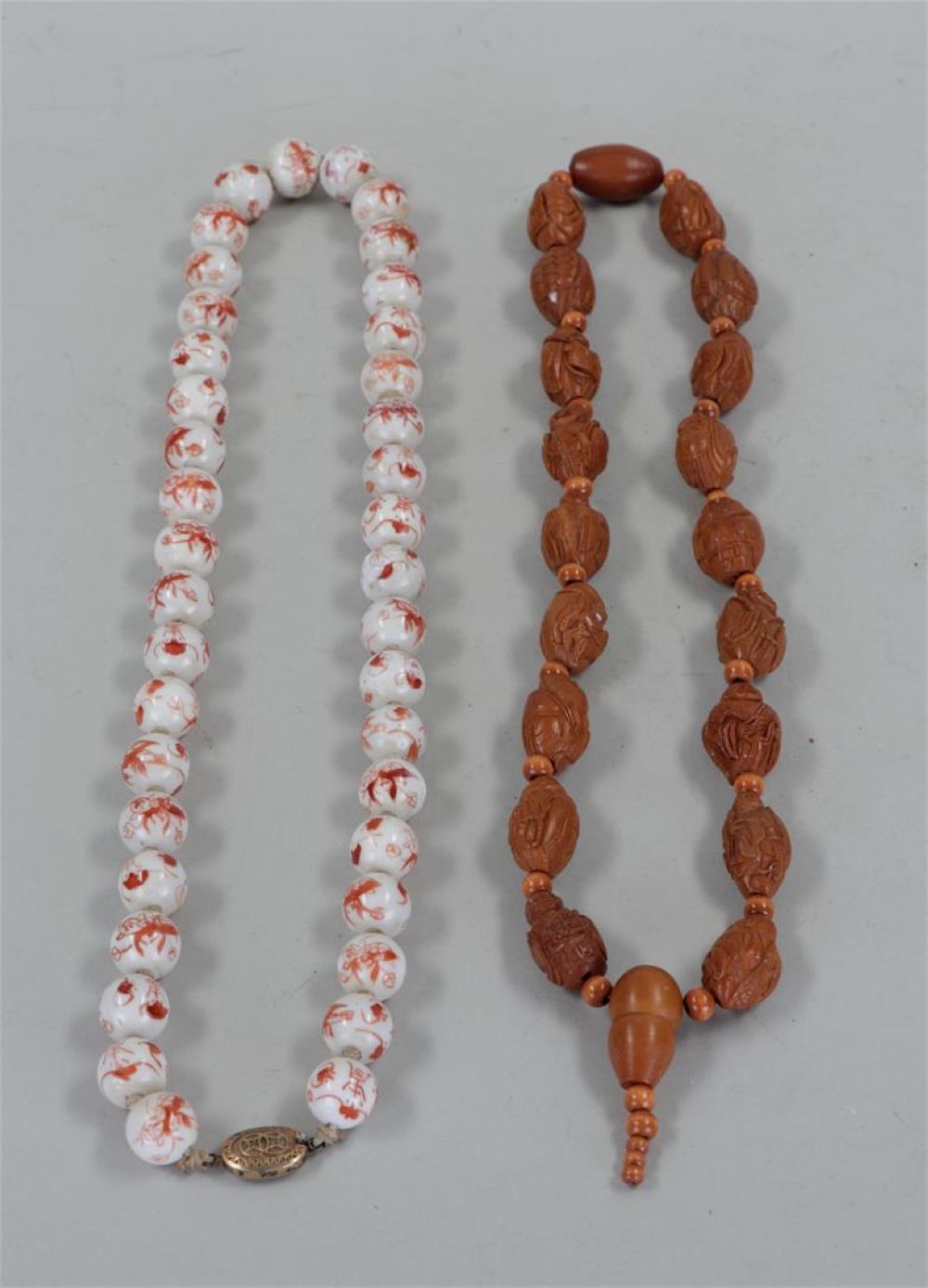 A lot consisting of (2) Asian necklaces. One made of pits.