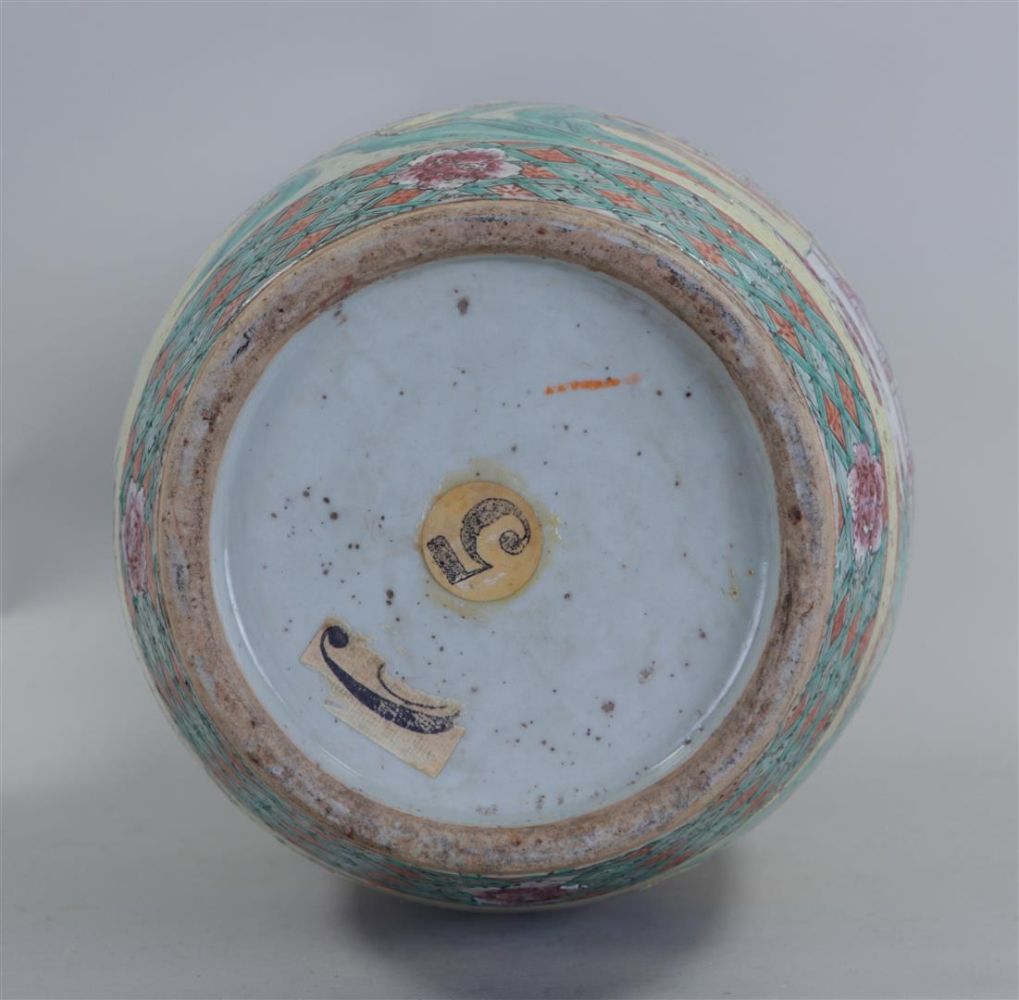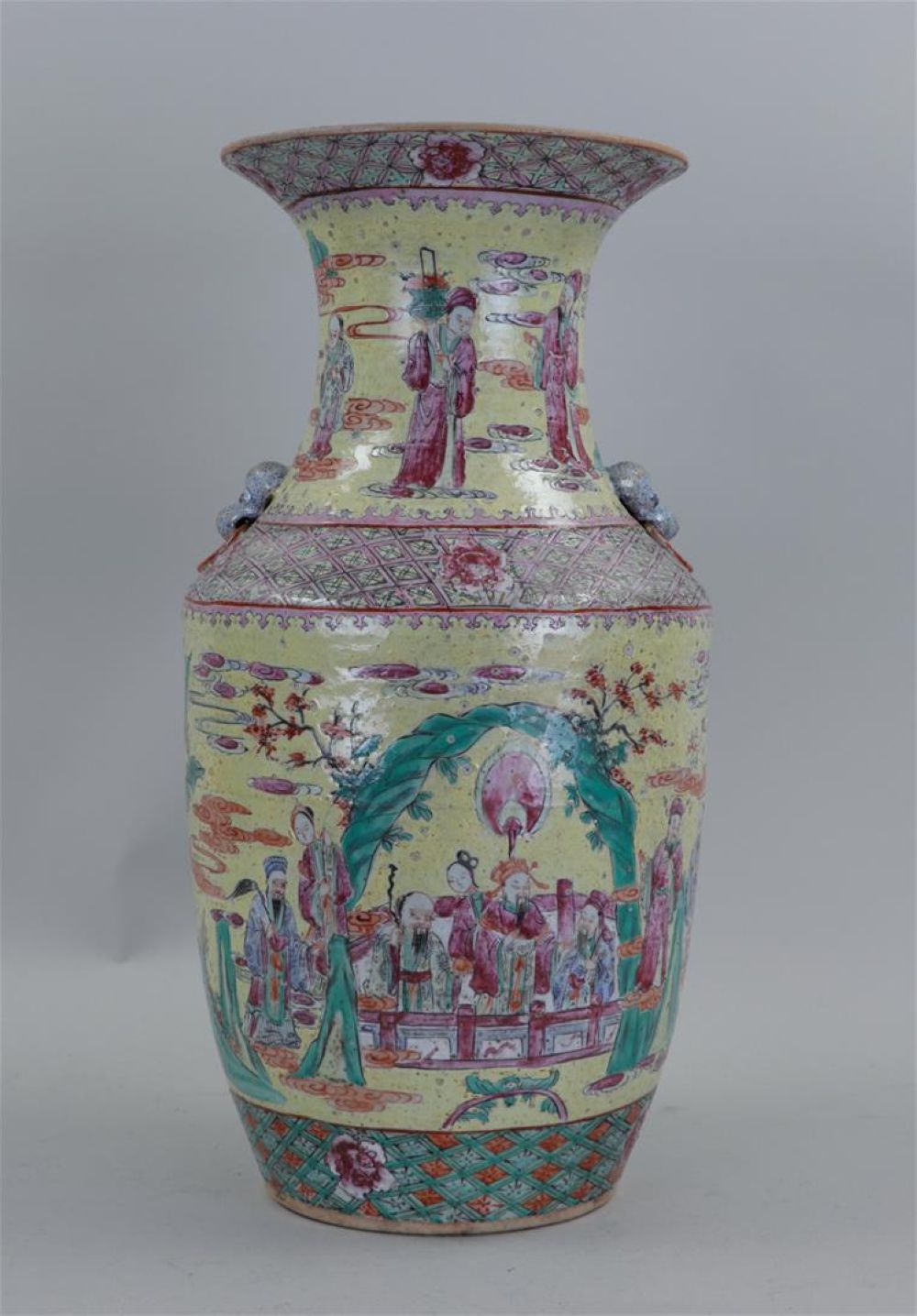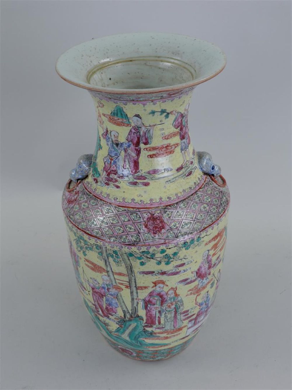 A porcelain famille rose vase with lid and various figures. China, 19th...