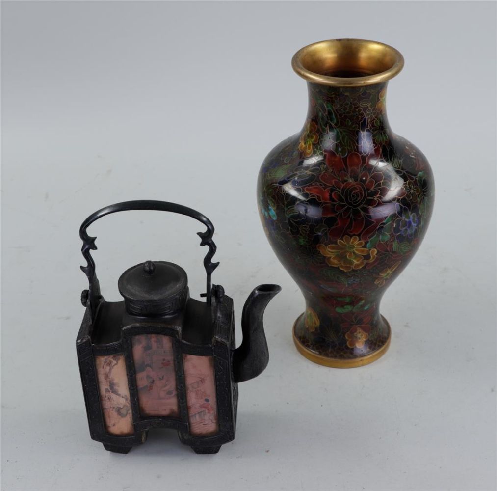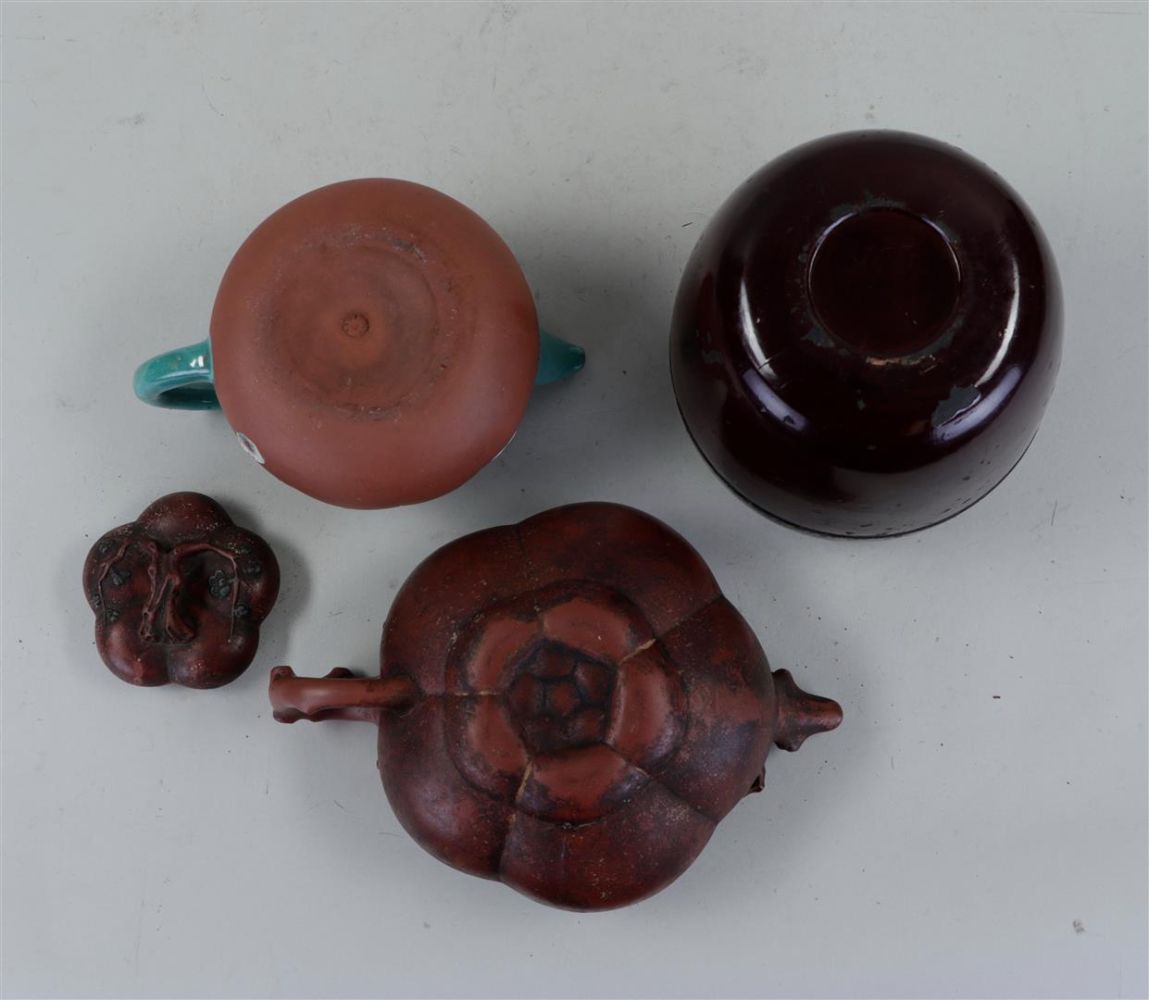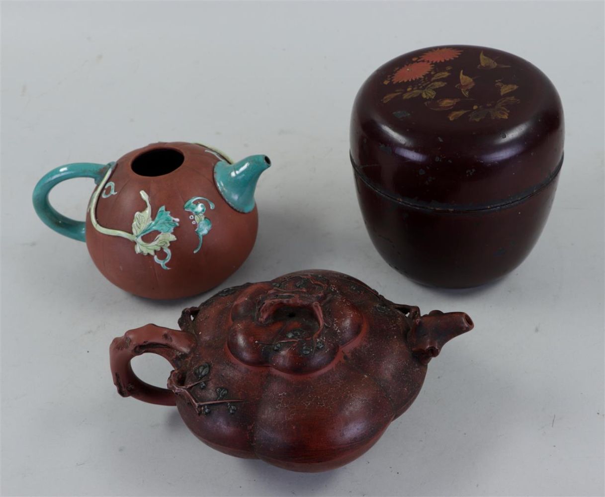 A lot of Chinese, consisting of, among other things, Yixing teapots, a cast teapot, a Republic lidded box, a lacquer box and a cloisonne vase.