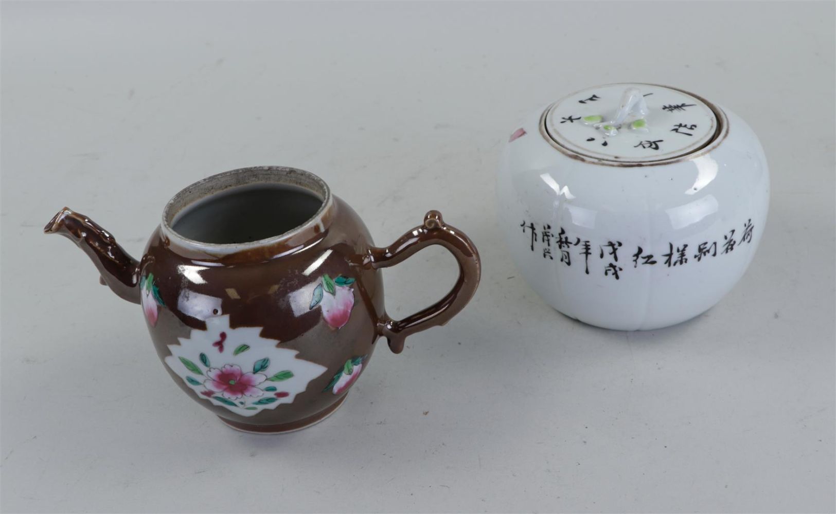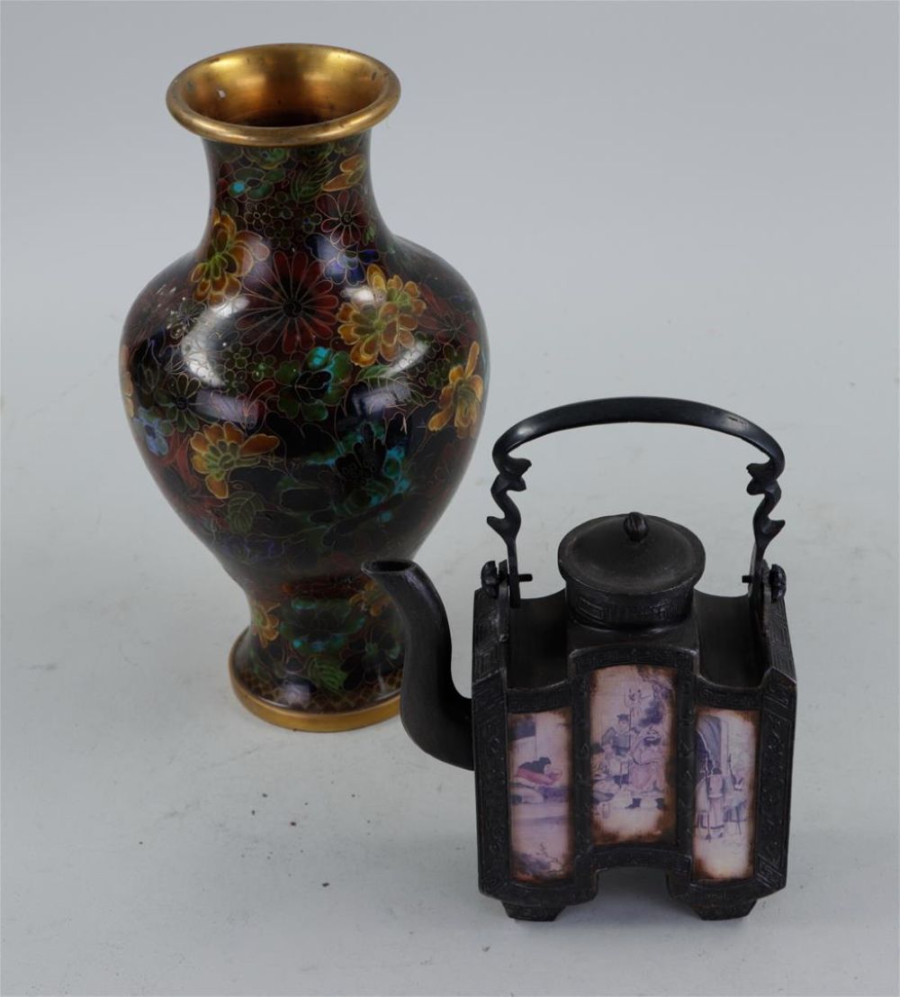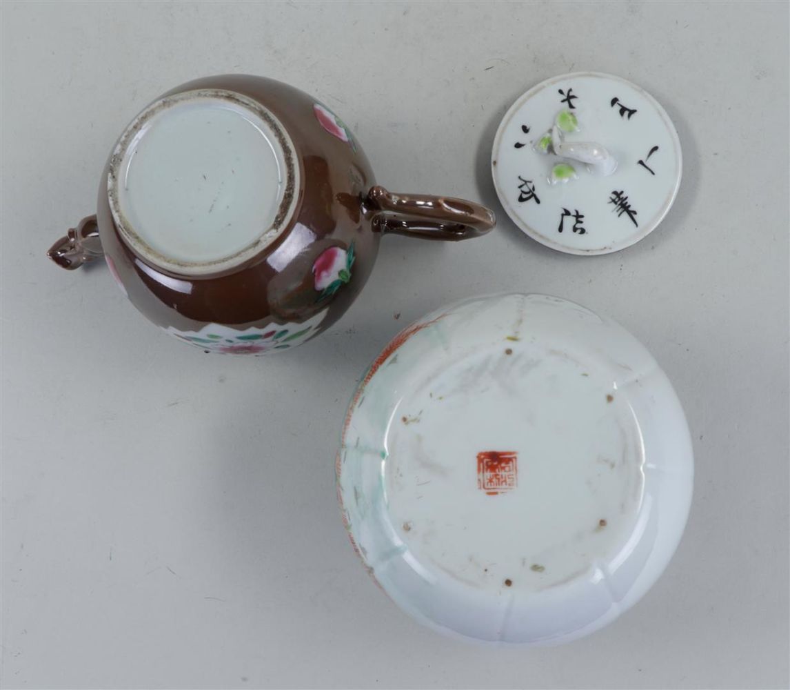 A lot of Chinese, consisting of, among other things, Yixing teapots, a cast teapot, a Republic lidded box, a lacquer box and a cloisonne vase.