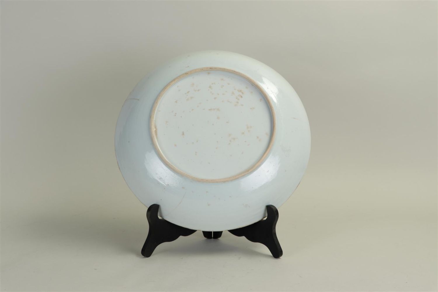 A Chinese dish with a representation of court ladies in a garden, China 18th century. Hairlines.