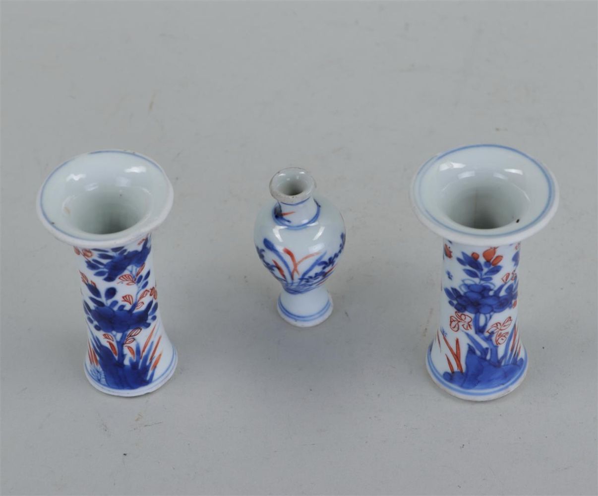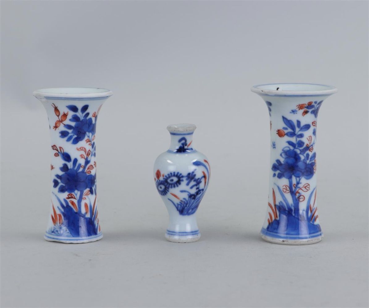 Two porcelain Imari beaker vases and an Imari etagère vase. China, 18th century.