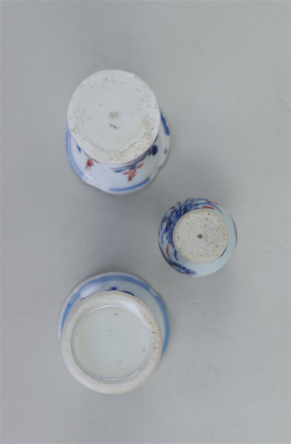 Two porcelain Imari beaker vases and an Imari etagère vase. China, 18th...