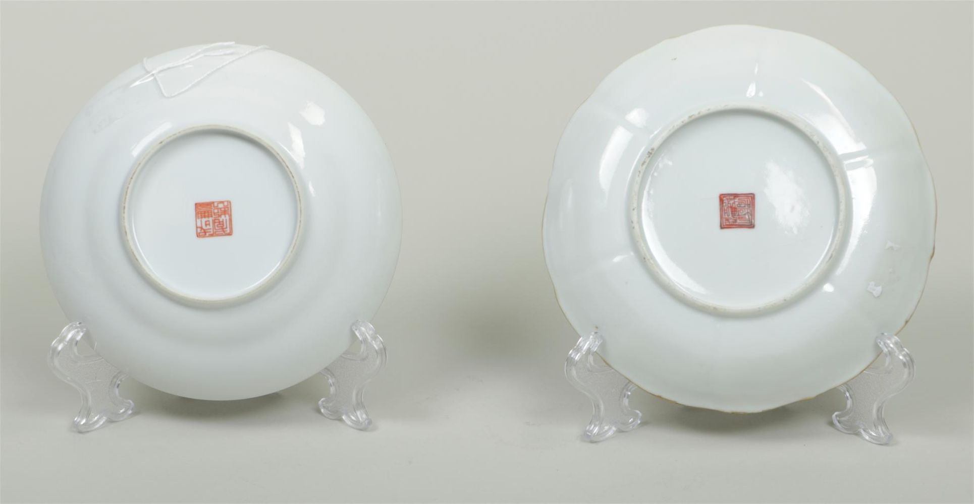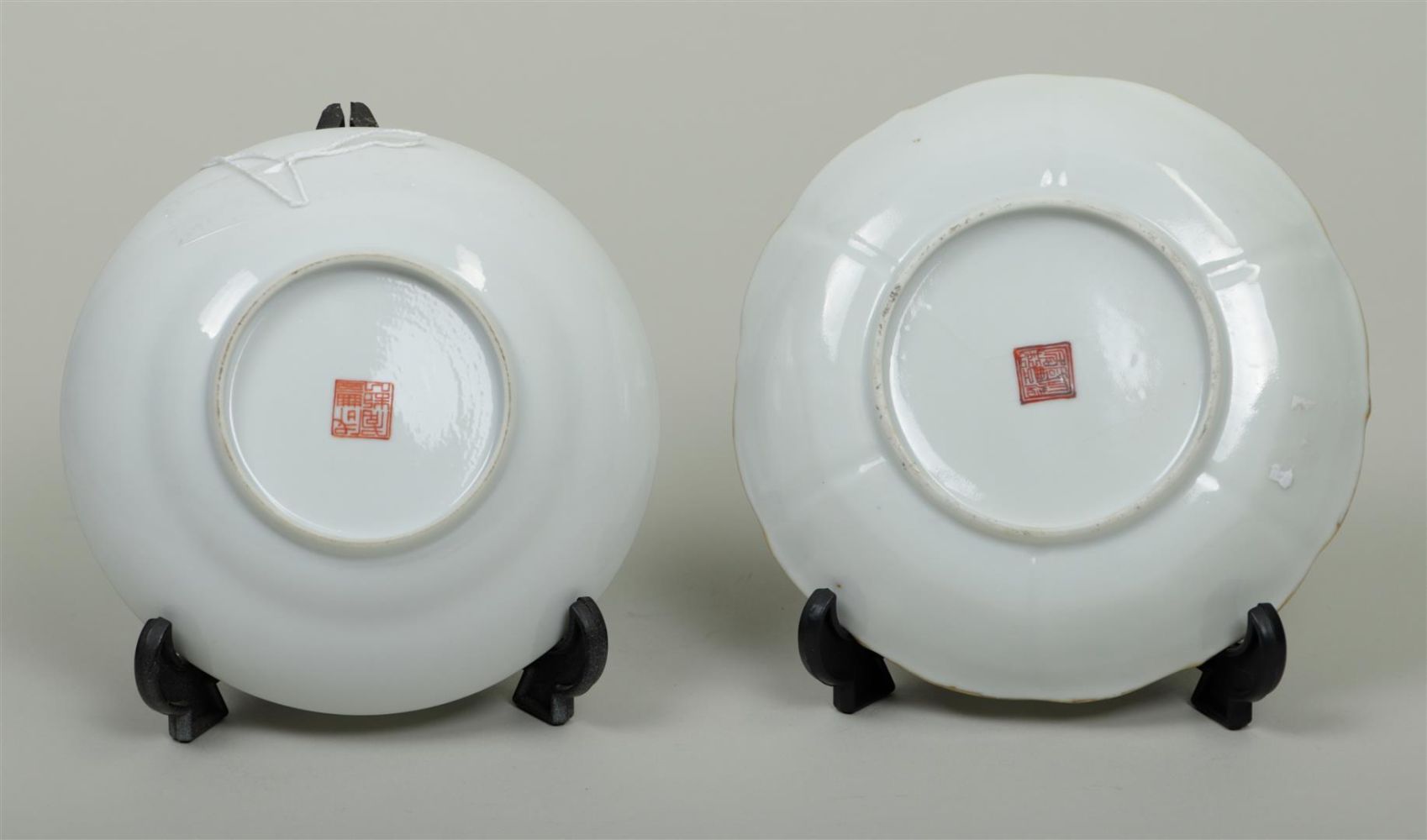 A set of two famile rose plates with decoration of various figures, marked on the back. China, 19th century. qracuelé.