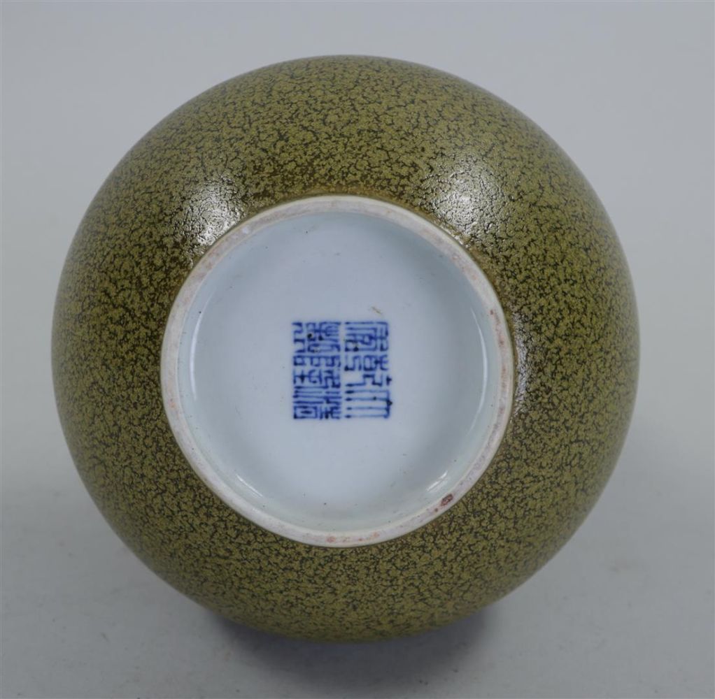 A green glazed gourd vase, marked Qianglong. China, 19/20th century.H. 24 cm.