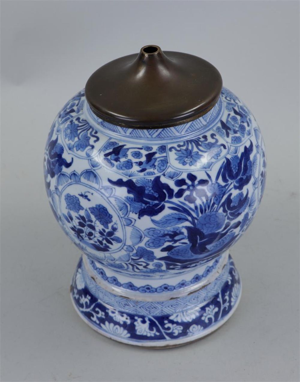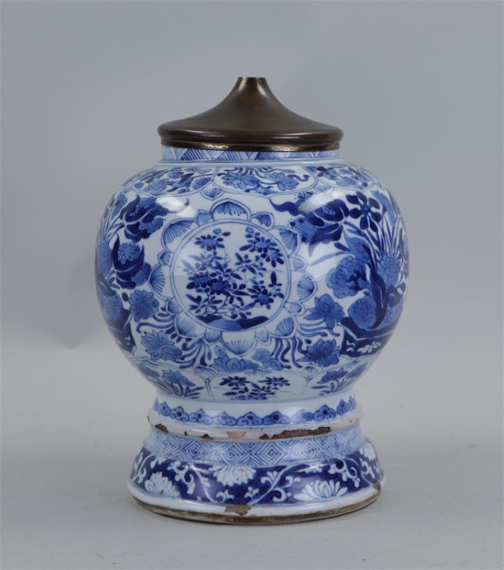 A porcelain vase with floral decoration, converted into a lamp base. China, Kangxi.