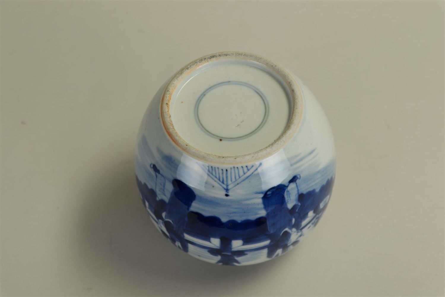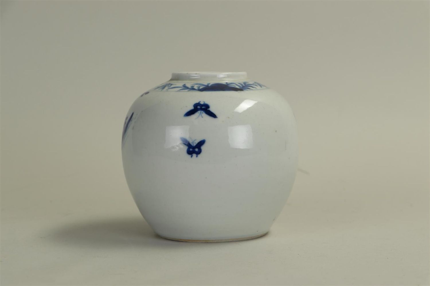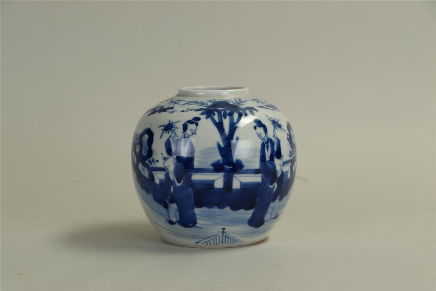 A Chinese porcelain ginger jar depicting a lady-in-waiting with a fool in a...