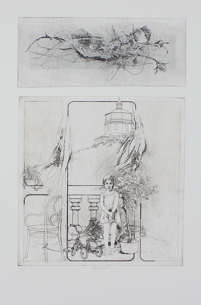 Saroni Sergio Bambina sul terrazzo, 1976 acquaforte a 2 colori su 2 lastre su...